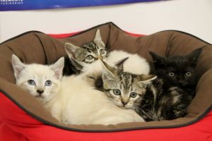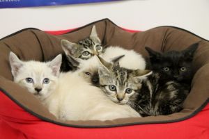 Puskas, Anette, Nathalie, Evelyne y Sabine son estos cinco preciosos pequeñines nacidos a finales de febrero en un patio y recogidos hace un par de días.