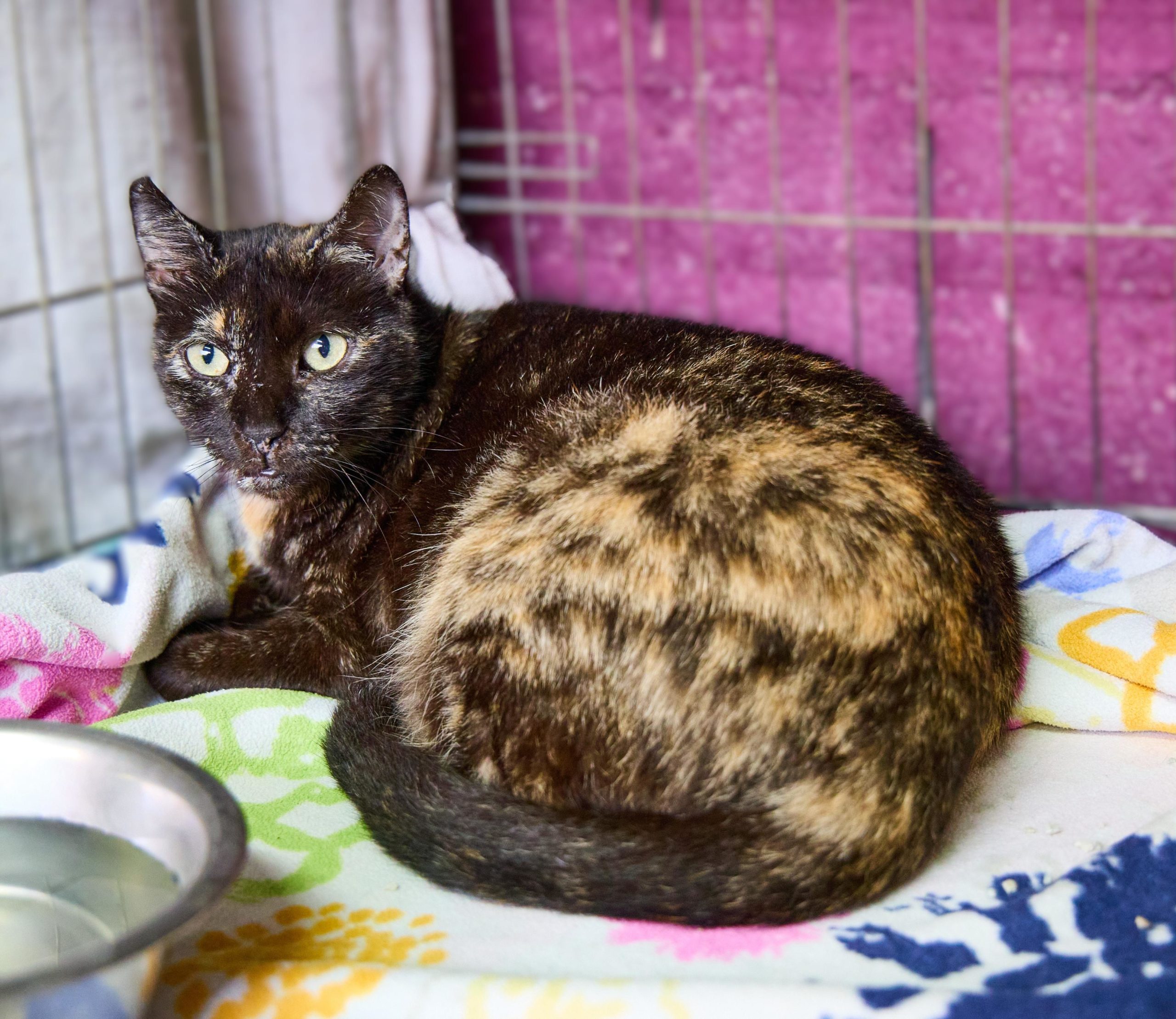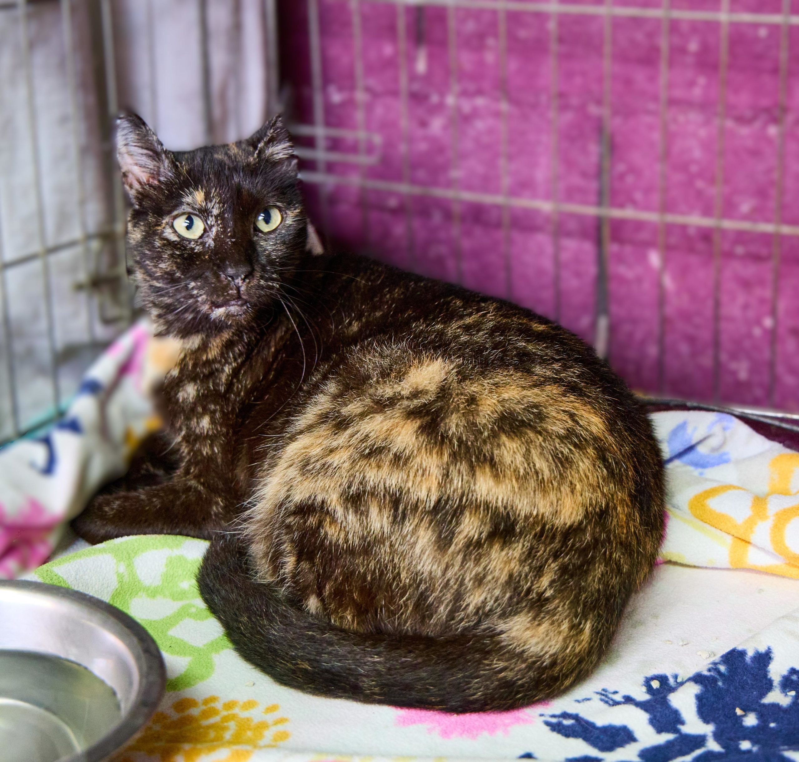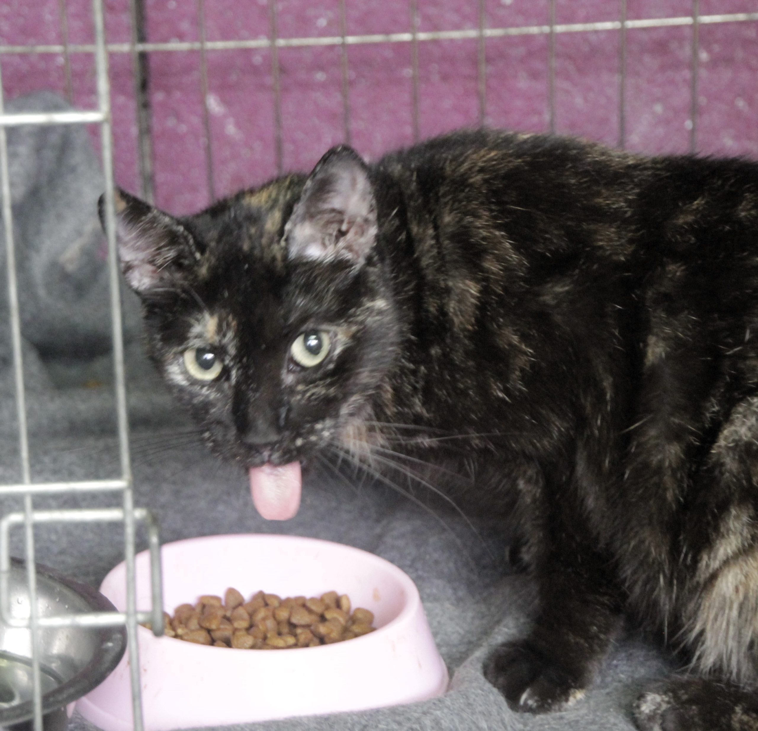 QUEEN es toda una señora, preciosa y adorable, llegó hace un año con un calicirus bestial , una ulcera en la lengua que era casi un agujero enorme. Es adorable.