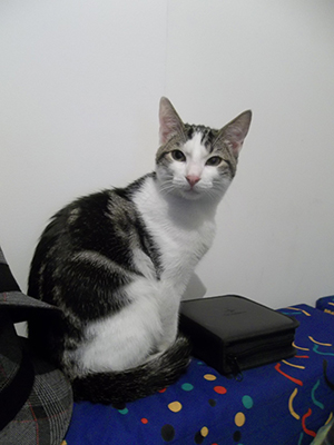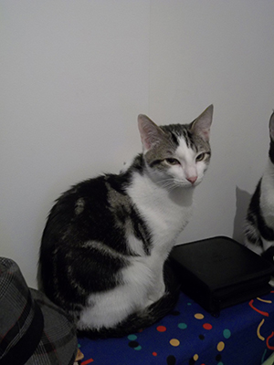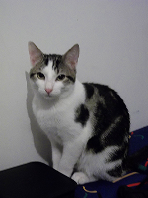 Es majetón y achuchable… aunque le gusta mucho jugar con otros gatos, agradece mucho que le cojan en brazos y le hagan mimos y más mimos.