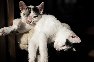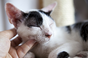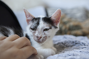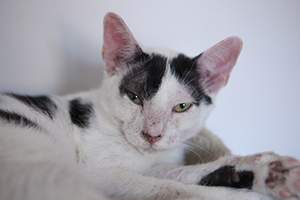 «Rebeco en un mes ha avanzado mucho, el tratamiento que tiene es duro, pero el es un campeón y lo lleva fenomenal. Era un gatito tímido, que llego bufando pero que poco a poco se ha ido viendo lo cariñoso que es. Duerme conmigo y me ronronea y amasa.