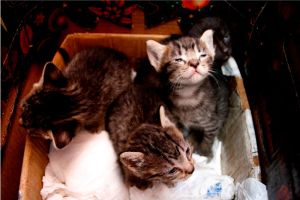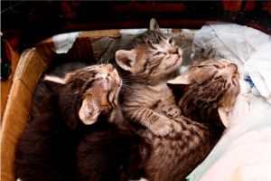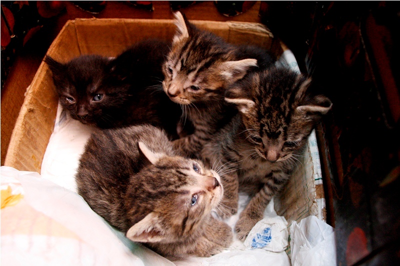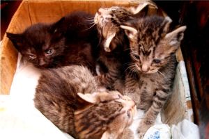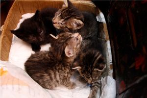 Los Riveritos son 4 hermanos, que por falta de sitio de momento viven donde los ha tenido la madre, en una caja de cartón, en un sótano, la madre va y viene, así que de momento están con ella. Tendrán aproximadamente un mes y son cariñosos, aún no sabemos sexos. Buscan casa, pronto empezarán a salir de allí y tienen peligros alrededor, así que una casa de acogida les vendría fenomenal hasta su adopción.