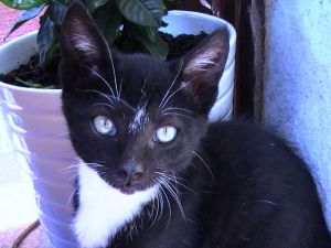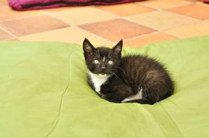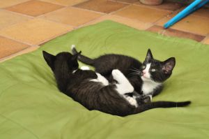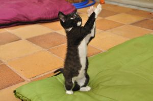 June es una de las supervivientes de los bebes de Lesly, ha sido criada con biberón desde que tenia apenas 18 días de vida. Ya tiene los dos meses de edad, está creciendo feliz, es un gata cariñosa, curiosa y muy guapa. Se lleva estupendamente con su hermano Rodolfo. En estos días sera vacunada y estará lista para encontrar un hogar donde crecer feliz. También es hermana de Soya y Caliope que ellas ya han tenido la suerte de encontrar un hogar. Ahora le toca a June.