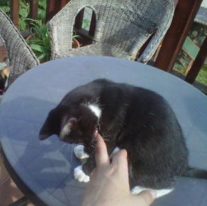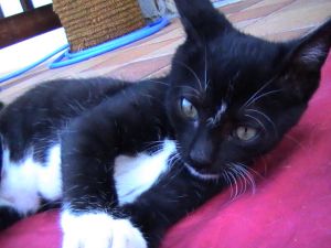 June es una gata muy tranquila,le encantan los mimos y que la acaricies mientras duerme. Se lleva muy bien con todos sus compañeros gatunos especialmente con su hermano Rodolfo y con sus compis perrunos.