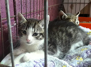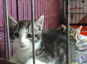 La semana pasada en poco mas de 24horas llegaban 8 cachorros nuevos a Felinos Bilbao. Ronnie y Eve, esta pareja de aproximadamente 6-7 semanas de edad estaban entre ellos. Llegaban muy asustados y con los ojitos muy mal y les costaba comer solos, así que a falta de casas de acogida les hacíamos un hueco en el refugio.