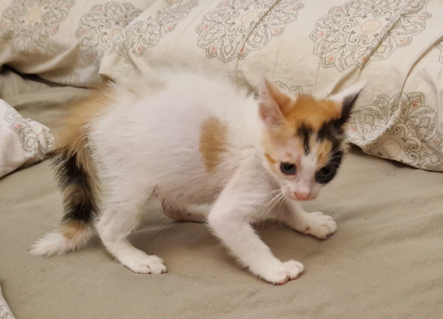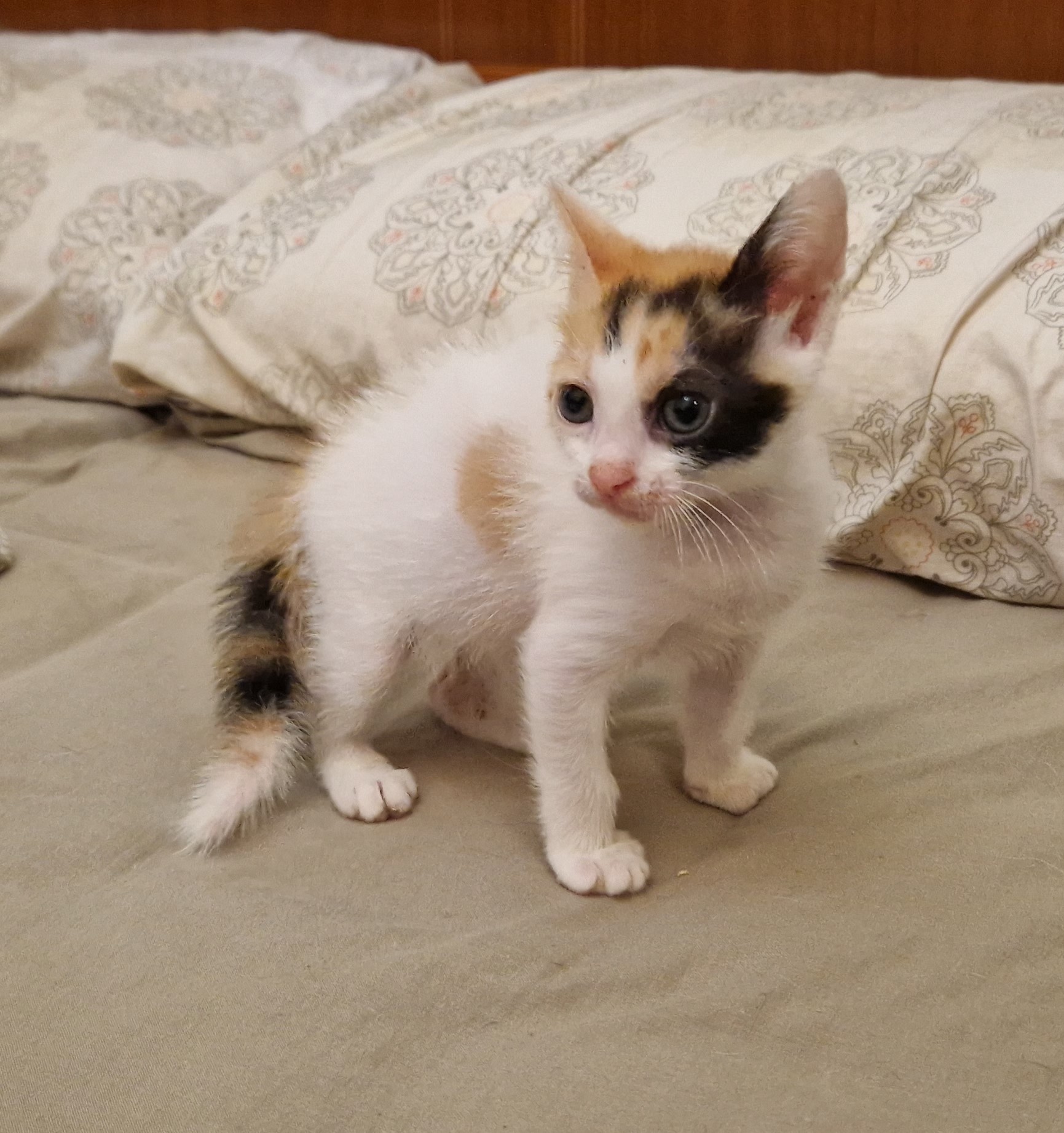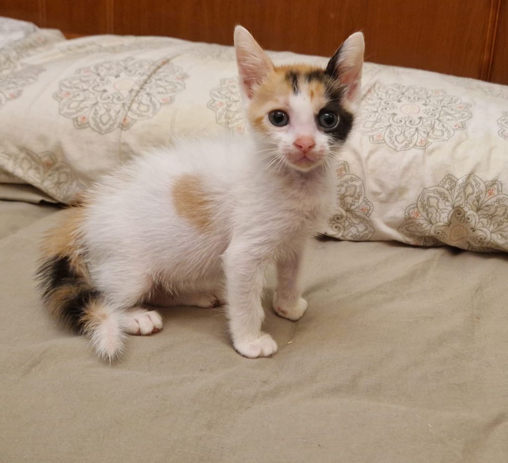 ROZALEN es una pequeñaja tricolor de biberón que llegó el 13 de septiembre. Actualmente ya tiene dientes, pesará sobre un kilo y ya se han comenzado las desparasitaciones.