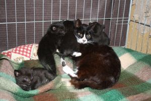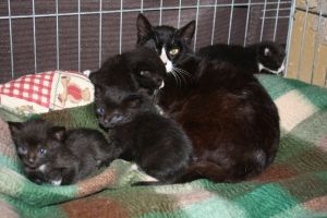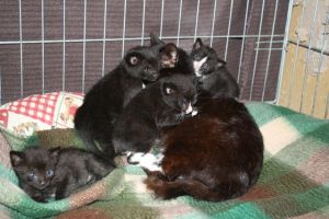 Galtza y sus bebés Neja, Sen, Sabai y Shiva son una familia preciosa. Galtza ya esta sacando su verdadero carácter… de primeras bufa un poco, lo cual es comprensible ya que esta protegiendo a su camada, pero en cuanto ve que solo quieres limpiarles los ojillos y ponerles lata te pide mimos e incluso hace el caballito. Todos buscan un hogar. Os dejamos un vídeo.
