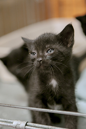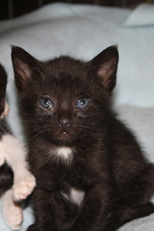 Al igual que sus hermanos esta comenzando a comer latita el solo y todos ellos buscan una familia.