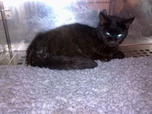 Saint Germain es este precioso gatito negro que nos ha llegado en unas condiciones lamentables