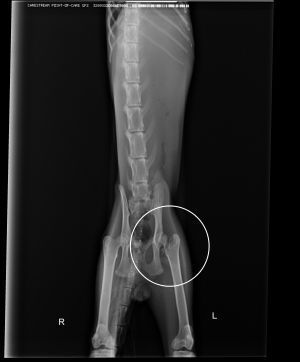 Le han hecho exploración completa y pruebas y los resultados son horrorosos…está muy grave; mucha deshidratación, atrofia muscular, calicivirus y rinitis mucopurulenta. Todo esto además de parásitos de todo tipo, es criptórquido abdominal…y tiene roto el cuello del fémur