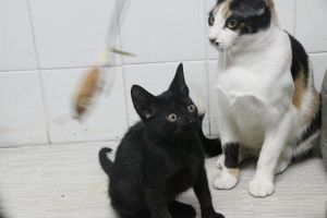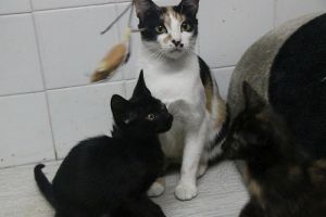 La pobrecita parió en plena calle y una compañera rescató a esta pequeña familia…al principio eran 6 hermanitos, pero desgraciadamente cogieron un virus que se llevó a dos de ellos los cuatro hermanitos han estado unos días ingresados y han salido adelante fuertes y majísimos.