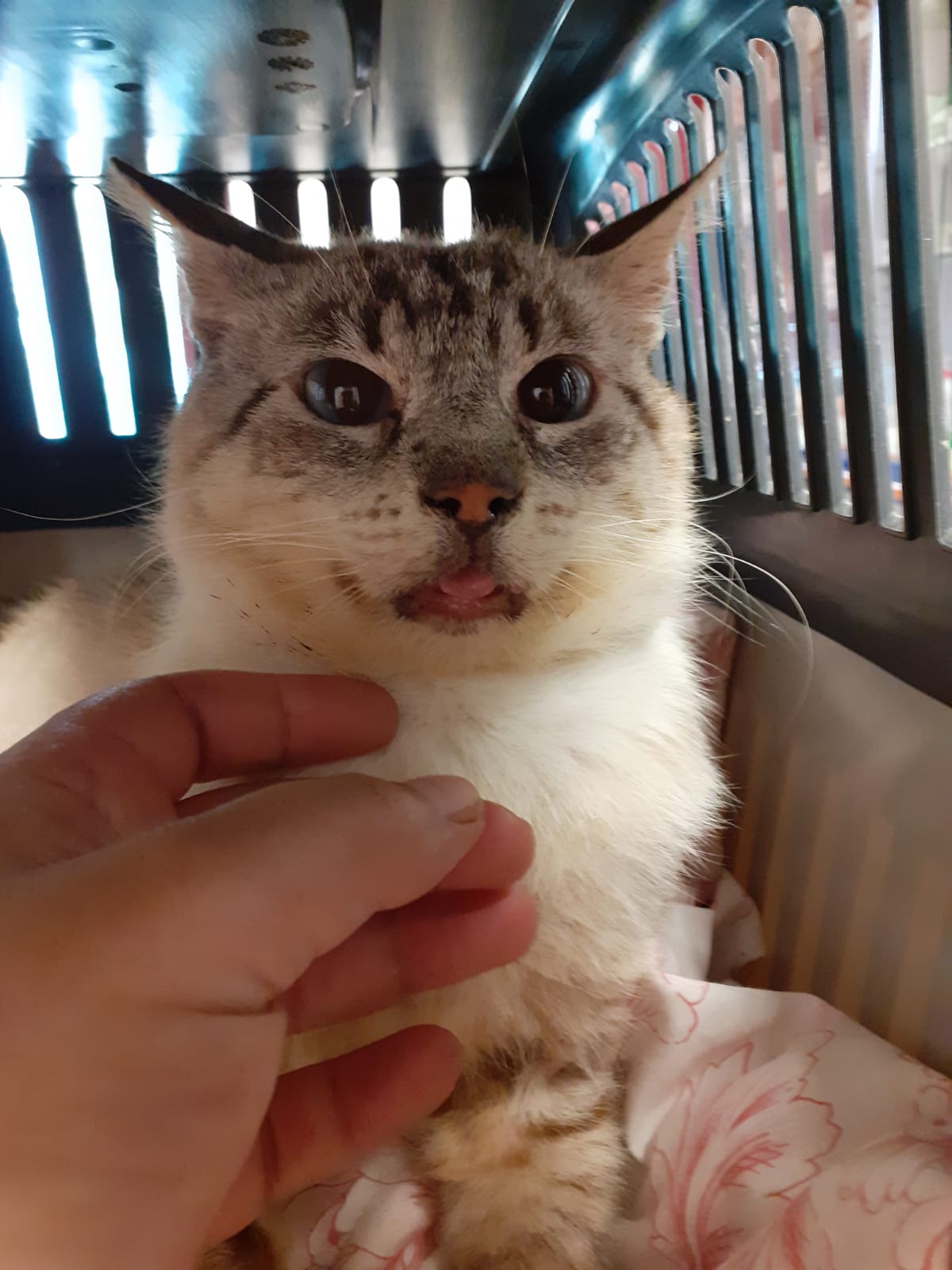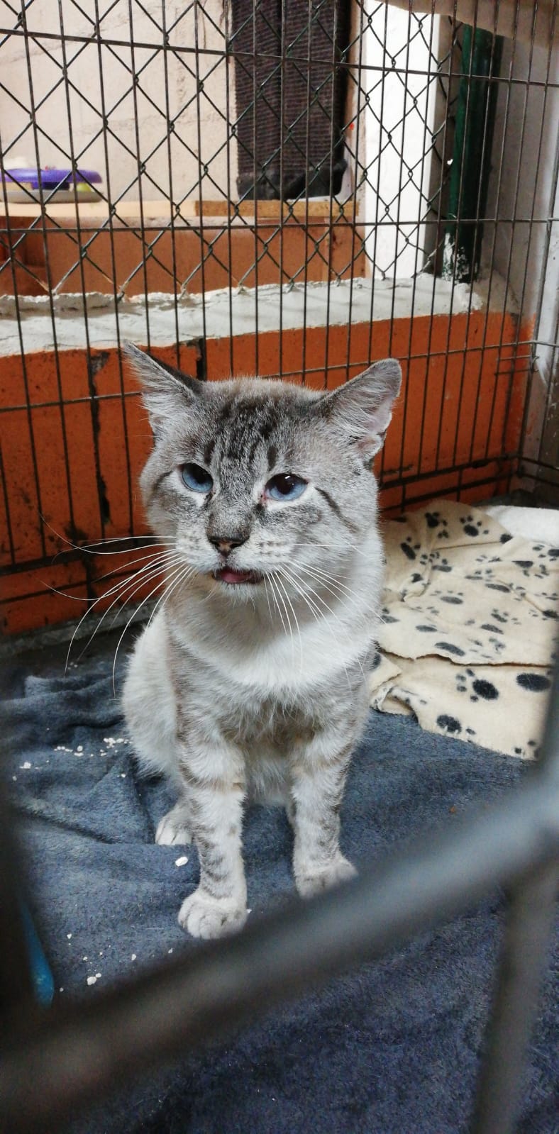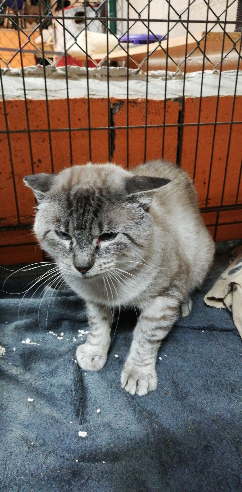 Sami es este precioso abuelete que llevaba años rondando una colonia. Estaba muy delgado, tenia mocos constantes y el estado del gato no era bueno así que le llevamos al veterinario. Tenia bronconeumonia. Aunque ha mejorado la vida en la calle le ha pasado factura y no acaba de recuperarse. También es cierto que el refugio no es el lugar adecuado para ello. Quienes le conocían nos contaron que tenia mas de 10 años. Se deja acariciar, pero solo con comida humeda ¡¡Le encantan las latas !! y sabe pedirlas 😀 . Si no llevamos comida rica no duda en lanzarte la zarpa. Queremos que Sami encuentre un buen hogar donde poder vivir su jubilación sin ningún tipo de preocupación. Un hogar donde sepan darle paciencia y tiempo