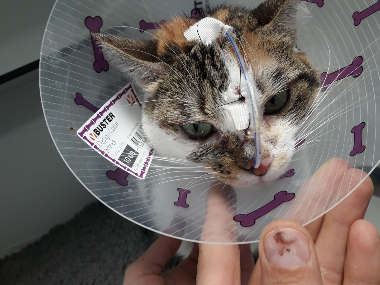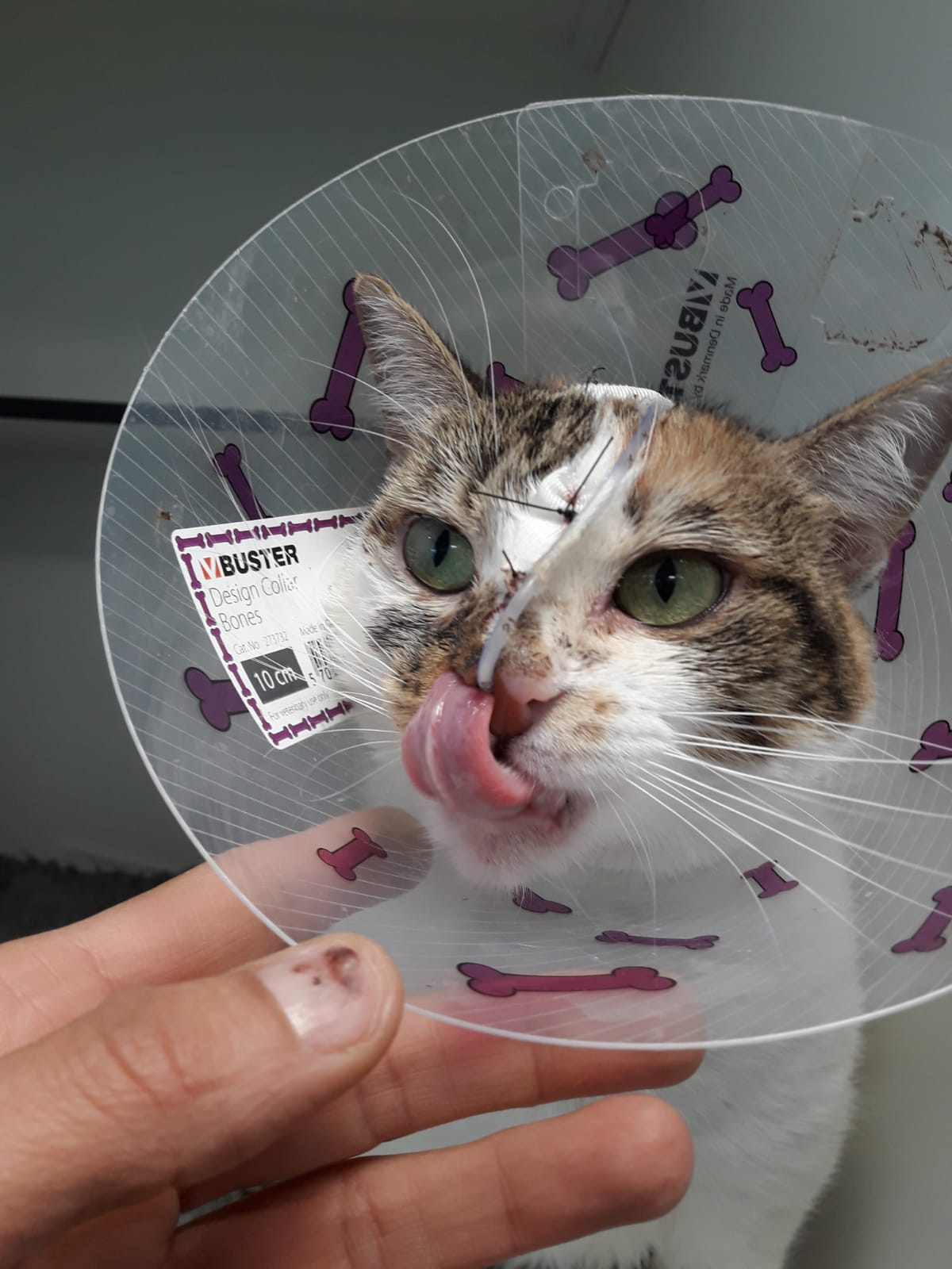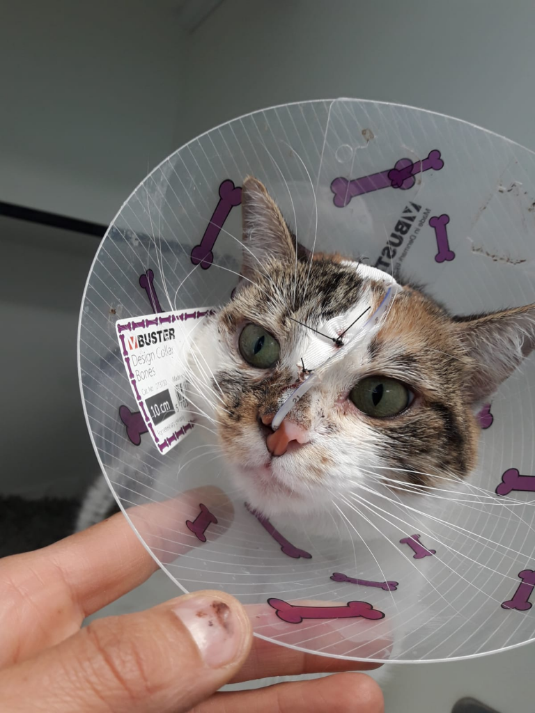 Finalmente Sancha tuvo que ser ingresada ya que por ella sola no quería comer, era tal la depresión que tenía que ni siquiera nos permitía manipularla.Se ponía a la defensiva y no podíamos siquiera intentar acariciarla. La analítica muestra alterados los valores hepáticos, algo normal cuando gatos obesos dejan de comer, hemos tenido suerte porque Sancha estaba al borde de una lipidosis Hepática como ya paso con nuestra querida Zulema¿ La recordáis?¿Recordáis todo lo que luchamos por ella? Sancha esta con sonda nasogástrica recibiendo el alimento necesario y con dosis de mimos ¡¡muchos mimos!! Una vez estabilizada se ha dado cuenta que en la clínica solo quieren el bien para ella y pide atenciones constantemente. Veterinarios, auxiliares, todo el personal de la clínica nos cuentan que es un verdadero amor de gata. Ayer comenzó a comer un poco por ella sola , así que es cuestión de días que le quiten la sonda y le den el alta. ES VITAL encontrar una casa de acogida para que no tenga que volver a a la perrera . AYUDA PARA SANCHA POR FAVOR!!!