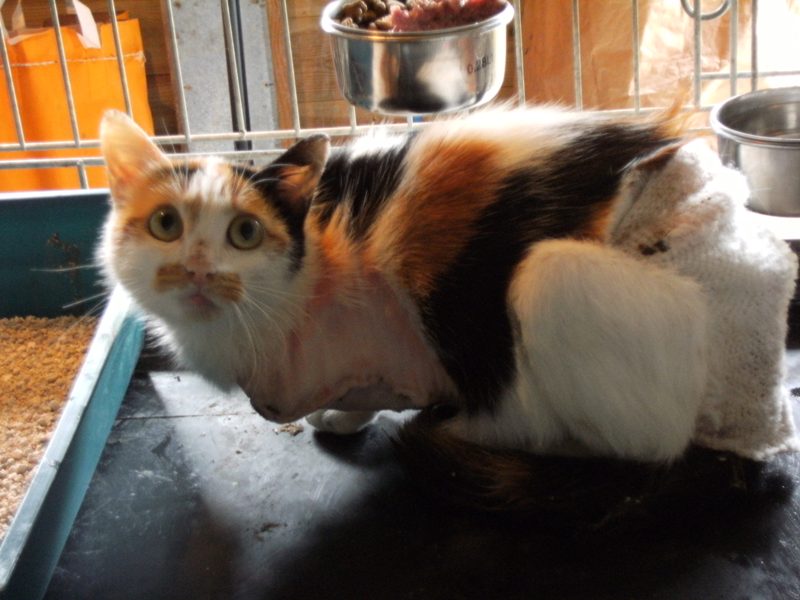 Mañana tendremos algunos resultados…De momento, necesitamos padrinos que nos ayuden con los gastos veterinarios de la gata, y nos den suerte para que a esta enana se le acaben las desgracias…