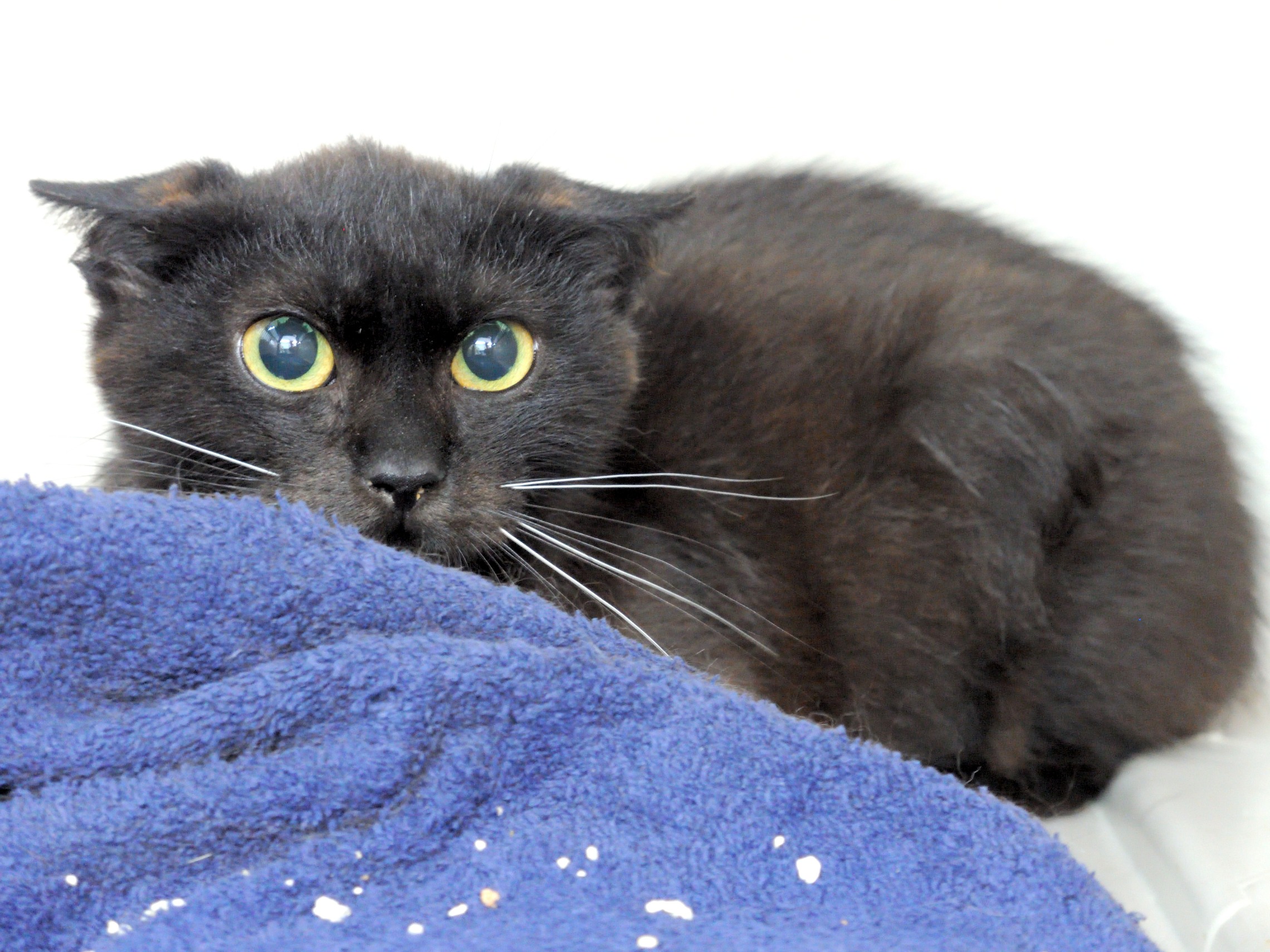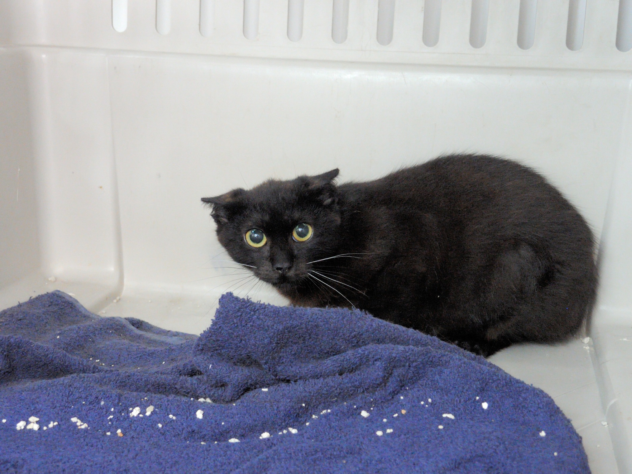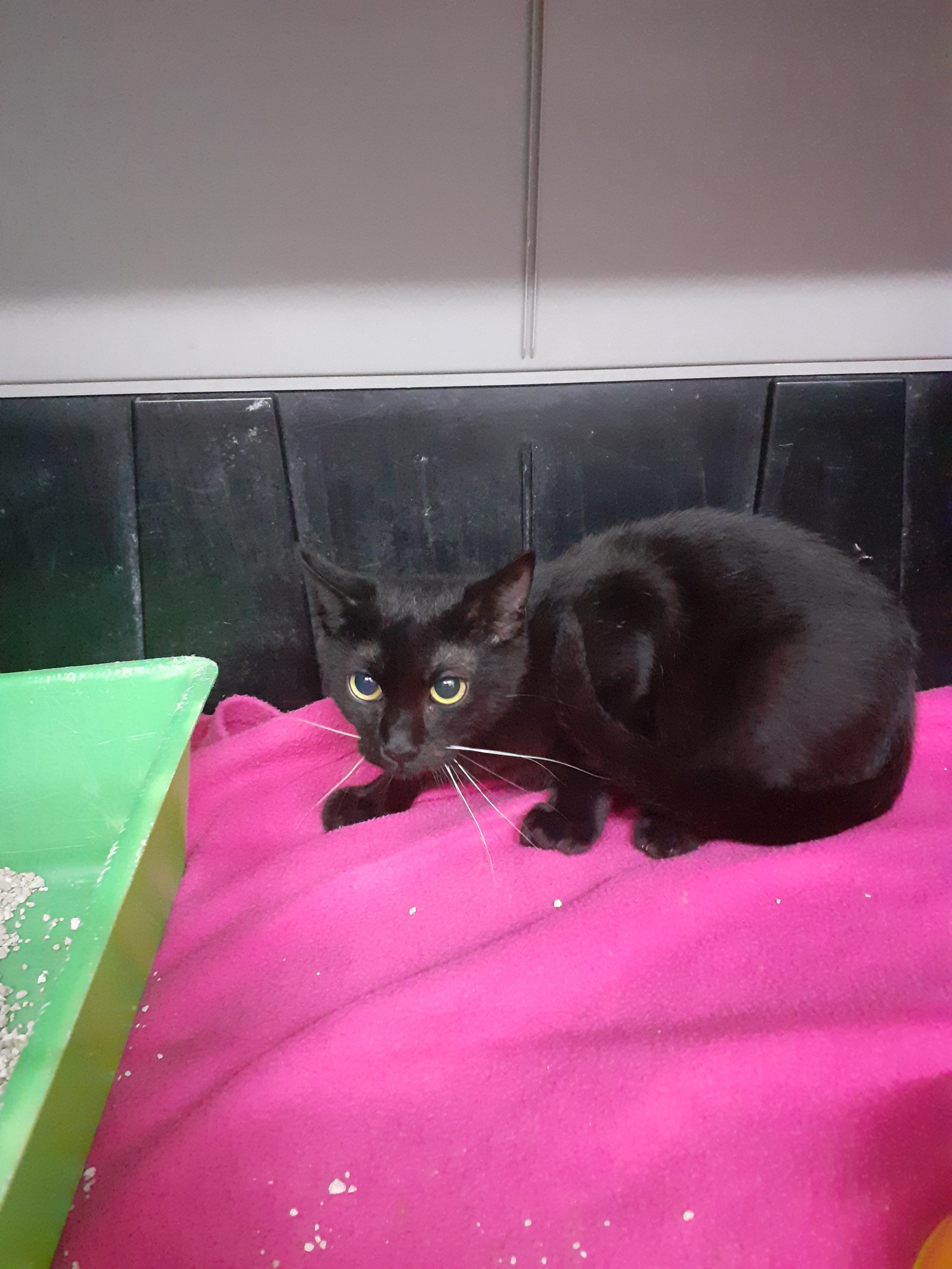 Serrin llegaba hace algunas semanas y lo hacia muy muy asustado, era impensable intentar acercarte a el. Con el paso de los días se ha ido relajando y ha empezado a confiar en nosotras. Ya esta esterilizado y es negativo a Leucemia e inmunodeficincia felina