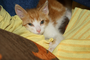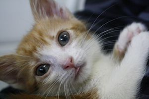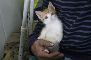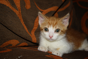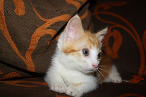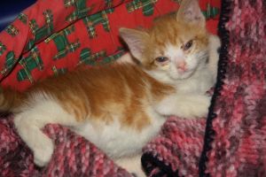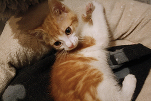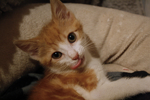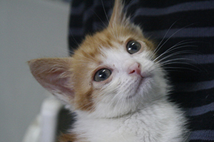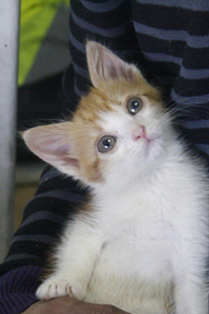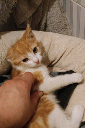 «Sharleen ya esta muchísimo mas tranquila, incluso ya se la oye ronronear cuando la coges en brazos. Ya no tiene tantísimo miedo, aunque algo la queda, y es ella la que cuando estamos cenando nos pega en las patitas para que la hagamos caso. Está recuperada del todo y busca una familia «.