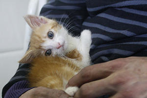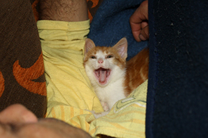 Al no estar acostumbrada al contacto con humanos de primeras bufa, pero en cuanto la dejas tranquilita llora para que la tengas en brazos, seguro que en breve sera una gatita muy cariñosa.