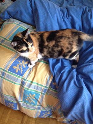 Le gusta mucho afilarse las uñas en cajas de cartón así que nos tiene todos los archivadores y cajas de embalar destrozados.Le encanta jugar y correr detrás de pelotas de goma pequeñitas que tiene mi hijo y por las noches se dedica a entrenarse haciendo carreras por toda la casa y cazando nuestros pies debajo de las sábanas.