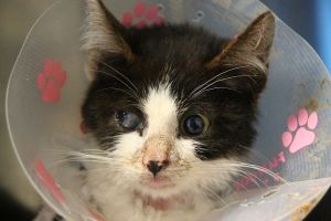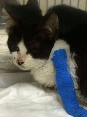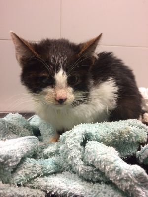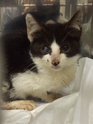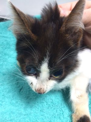 Silvestre es este pobre pequeñín de unos dos o tres meses recogido en la calle el mismo día de fin de año y llevado de urgencia al vete