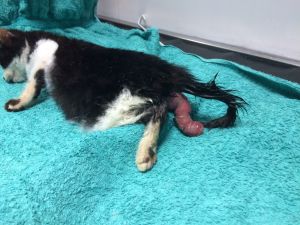 Lo que en principio era «solo» un prolapso intestinal tremendo…ha terminado siendo un cuatro tremendo para este chiquitín que solo está empezando a vivir