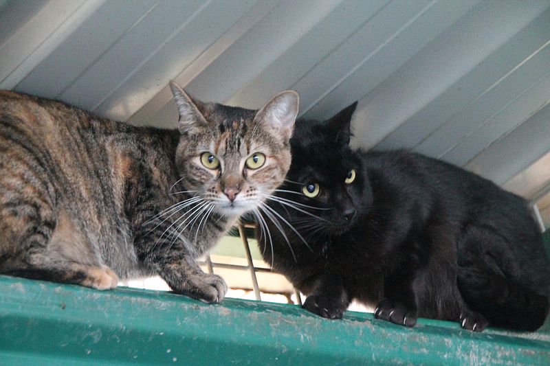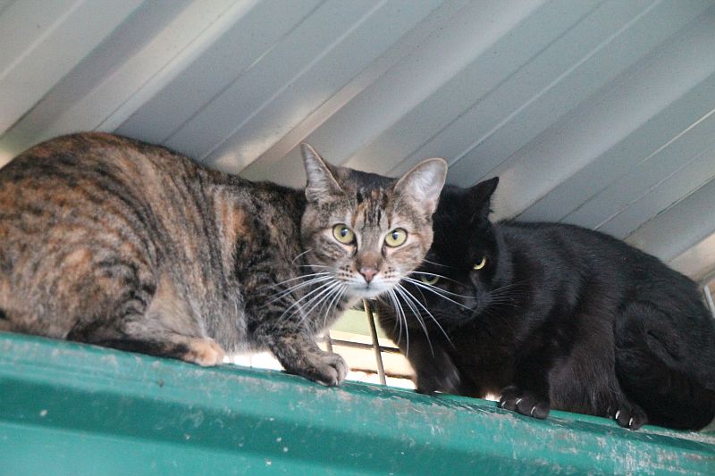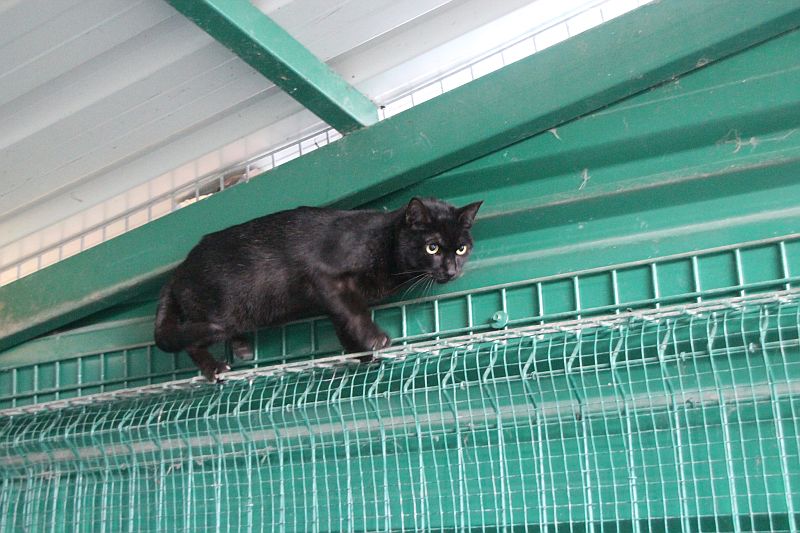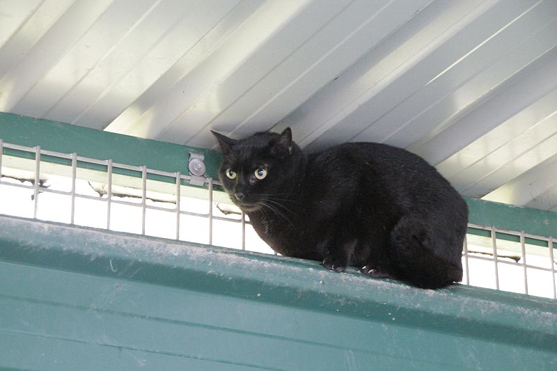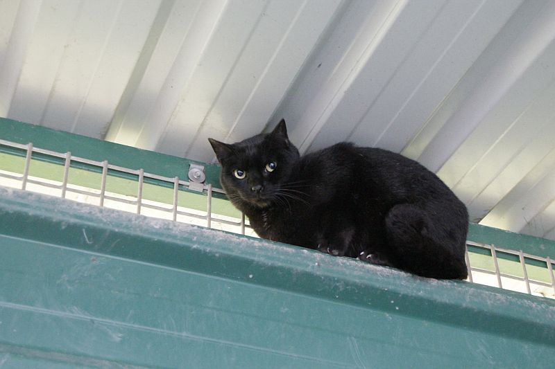 A Simón siempre lo encontramos en las alturas; no acaba de confiar en nosotras. Hasta que no salimos del recinto no baja a comer lata ¡no hacemos carrera con el! Ser positivo a leucemia y tener carácter huidizo no le ayuda a encontrar un hogar, lo sabemos, pero no por ello vamos a dejar de intentarlo.