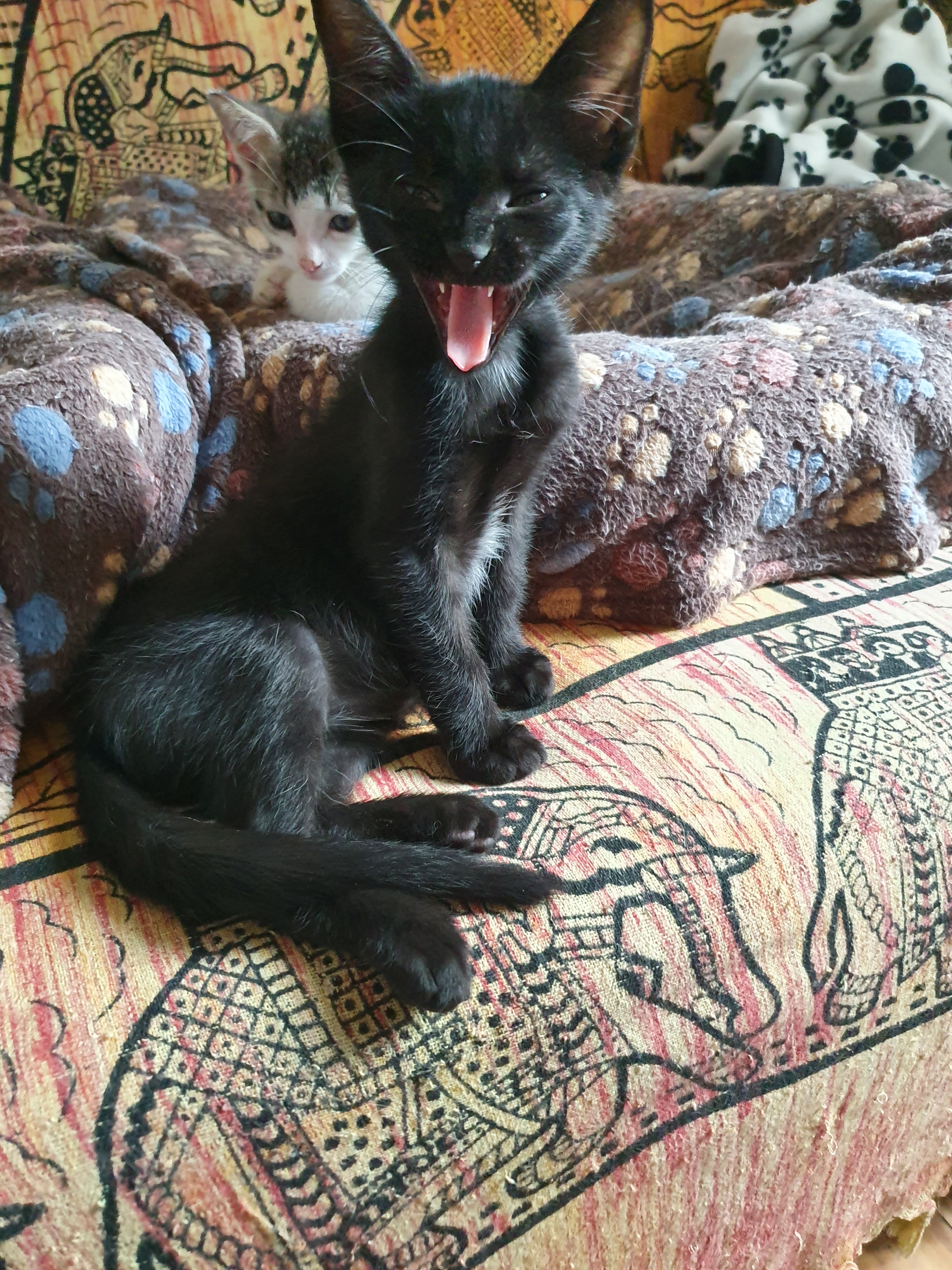 El pasado fin de semana recibíamos el aviso que alguien habia abandonado en una caja de cartón en la basura 7 bebes. Corrimos todo lo que pudimos pero para uno llegamos tarde, y aunque ingreso inmediatamente no lo supero. Conseguimos para el resto casas de acogida y Sion y Elmo conviven juntos estupendamente. Por el momento son muy pequeños pero os los vamos presentando