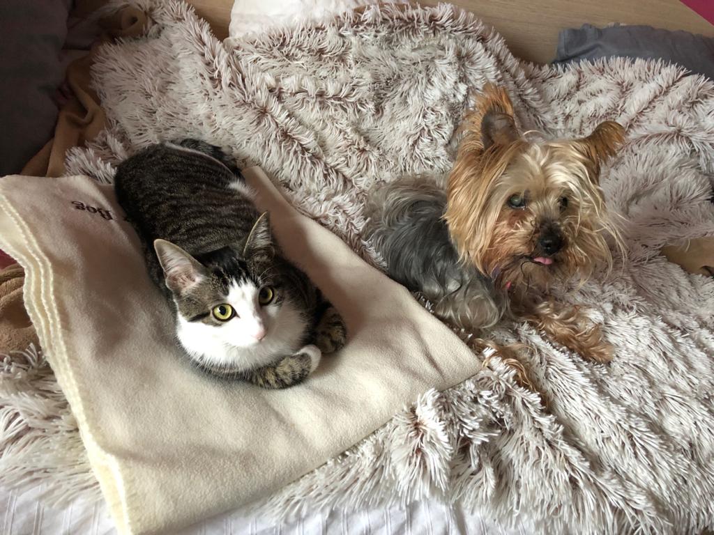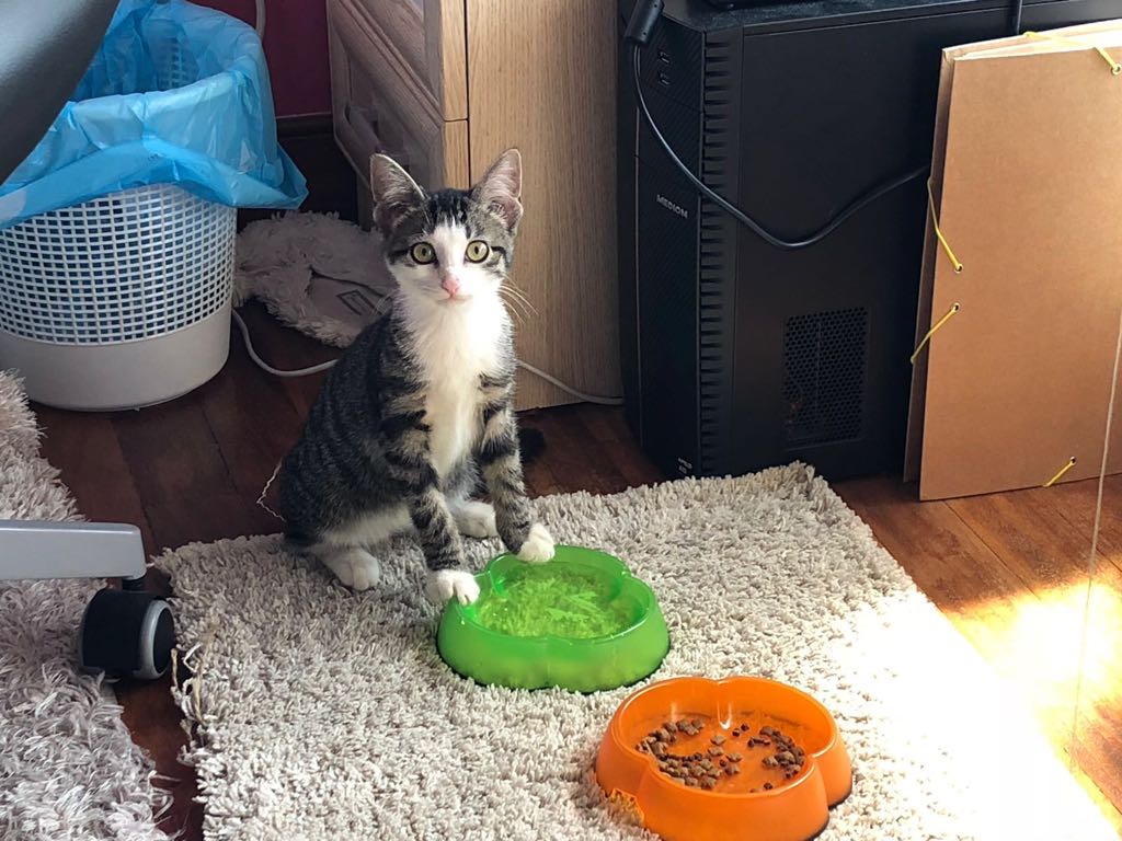 Adriana, ahora es Soba, y su historia es muy bonita. Ella encontró un hogar precioso donde le quieren con locura, y donde además comparte vida con Cuqui, un perrito que le ha aceptado fenomenal. Soba ha ido creciendo en su casa muy feliz, y sus adoptantes también. Tanto es así que un día decidieron que querían adoptar a otra gatita que lo necesitase. Se dejaron aconsejar estupendamente por nosotras y llegó Guiomar, y desde entonces conviven más que felices. La historia de Guiomar la podéis ver en su «Final Feliz». Millones de gracias a la familia preciosa que les ha dado la oportunidad que merecían.