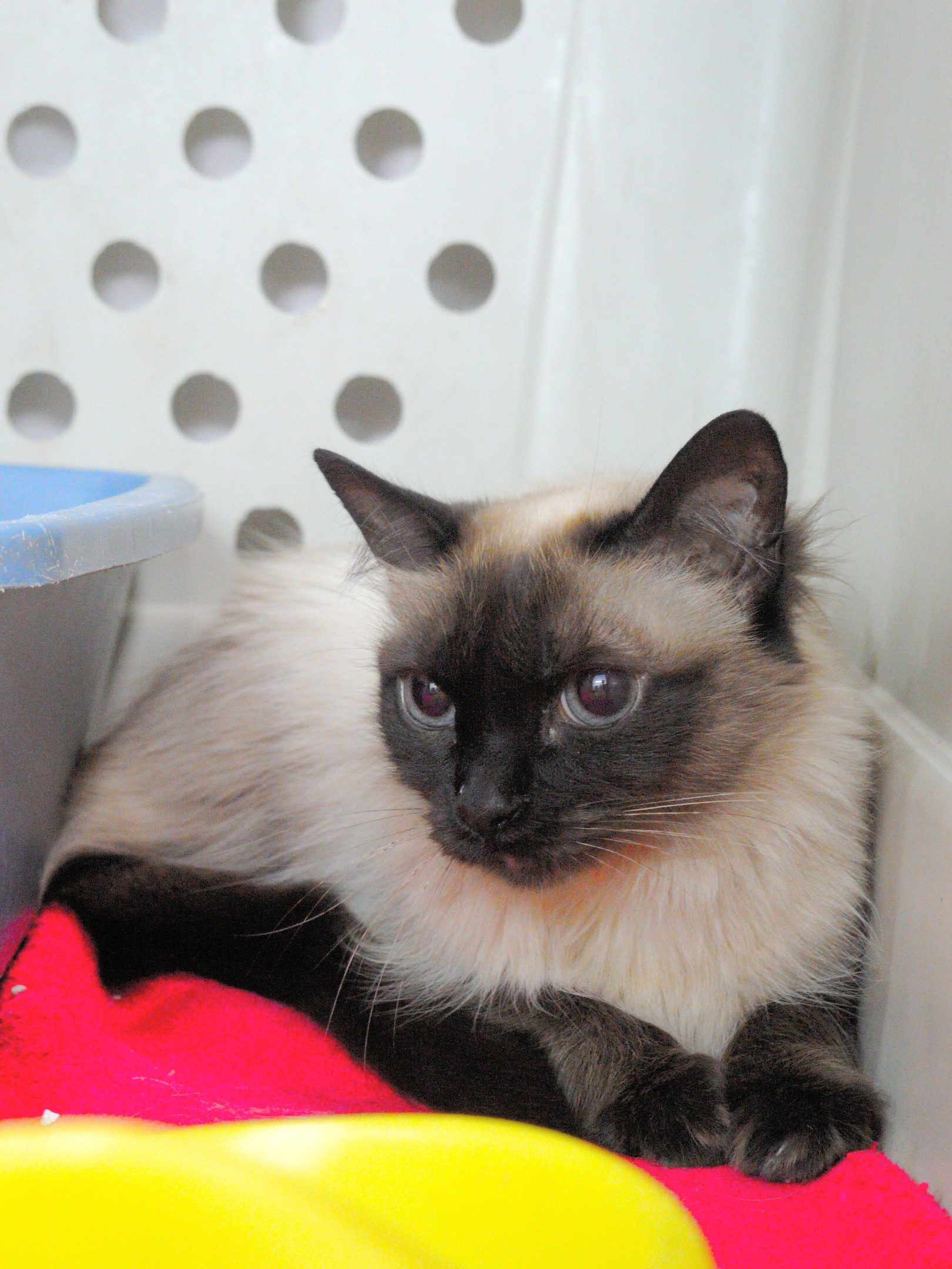 Sophia es esta preciosa siamesa de pelo semilargo que  ha llegado hace muy poco a la perrera y ya ha tenido que salir al veterinario. Sospechamos que no es una gata joven y su actitud en la perrera era de gata muy tranquila que se dejaba acariciar. Dejo de comer, típico en gatos caseros que acaban en la perrera e hizo un pico de fiebre asi que la llevamos a ingresar. La analítica era bastante buena para ser una gata callejera y su aspecto general no era malo, lo que si han visto es que tiene gingivitis. Ya le han puesto tratamiento para ello y ahora se recupera en el refugio. Lo que necesitamos para ella es una casa de acogida donde poder recuperarse y que no vuelva a enfermar ¡¡Ayuda!!