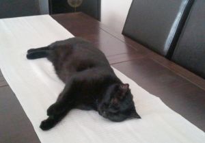 Con los perros bien, sin más no les presta mucha atención y con gatos puede estar en el sofá tumbada al lado de alguno y no les hace nada. Vamos, que es una gata normal, con sus cosillas de gata pero nada anormal. La gusta subirse a la espalda, afortunadamente, cuando lo hace no saca las uñas.