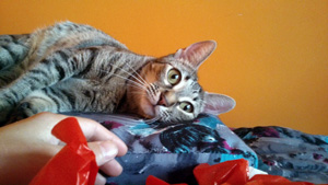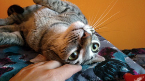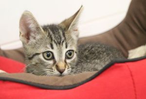 Es una gatita buena y cariñosa…que ya le toca encontrar su hogar definitivo donde seguir creciendo como hasta ahora feliz y querida…ANIMAOS!!