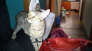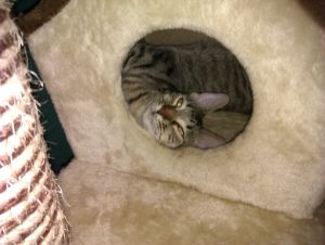 Le costó un poquillo adaptarse a su compañero de acogida…pero ya las cosas van bien; unos días se quieren y otros no se pueden ver…cosas de gatos