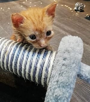 Susanita fue recogida junto con sus 4 hermanos y desde el principio fue la más habladora sobretodo a la hora de pedir comida, era capaz de hacer flexiones agarrándose a la jeringa con las 4 patitas, jajajaja y ahora que ya come sola está sucísima porque mete las dos patas de delante y medio cuerpo, cabeza incluída, en el plato así que la cara se la tocas y la tiene acartonada,es una comilona y cariñosa como todos los hermanos
