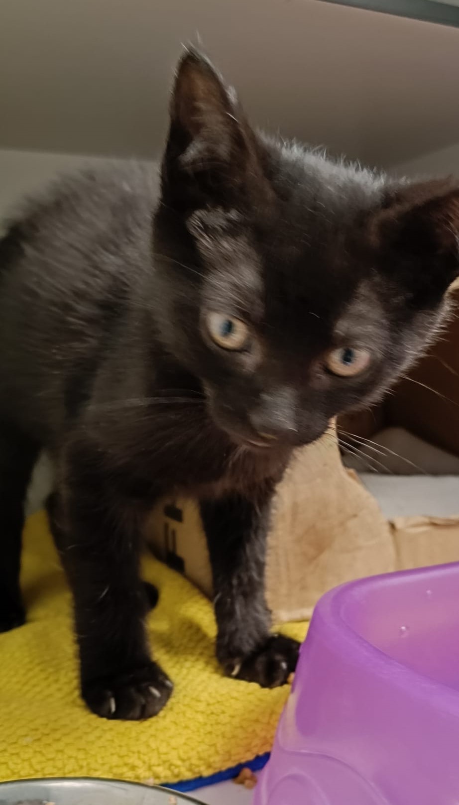 SVARTY es una mini belleza negra de ojos ámbar. Es un poco tímida de momento. Cumple 2 meses el día 13 de Julio.