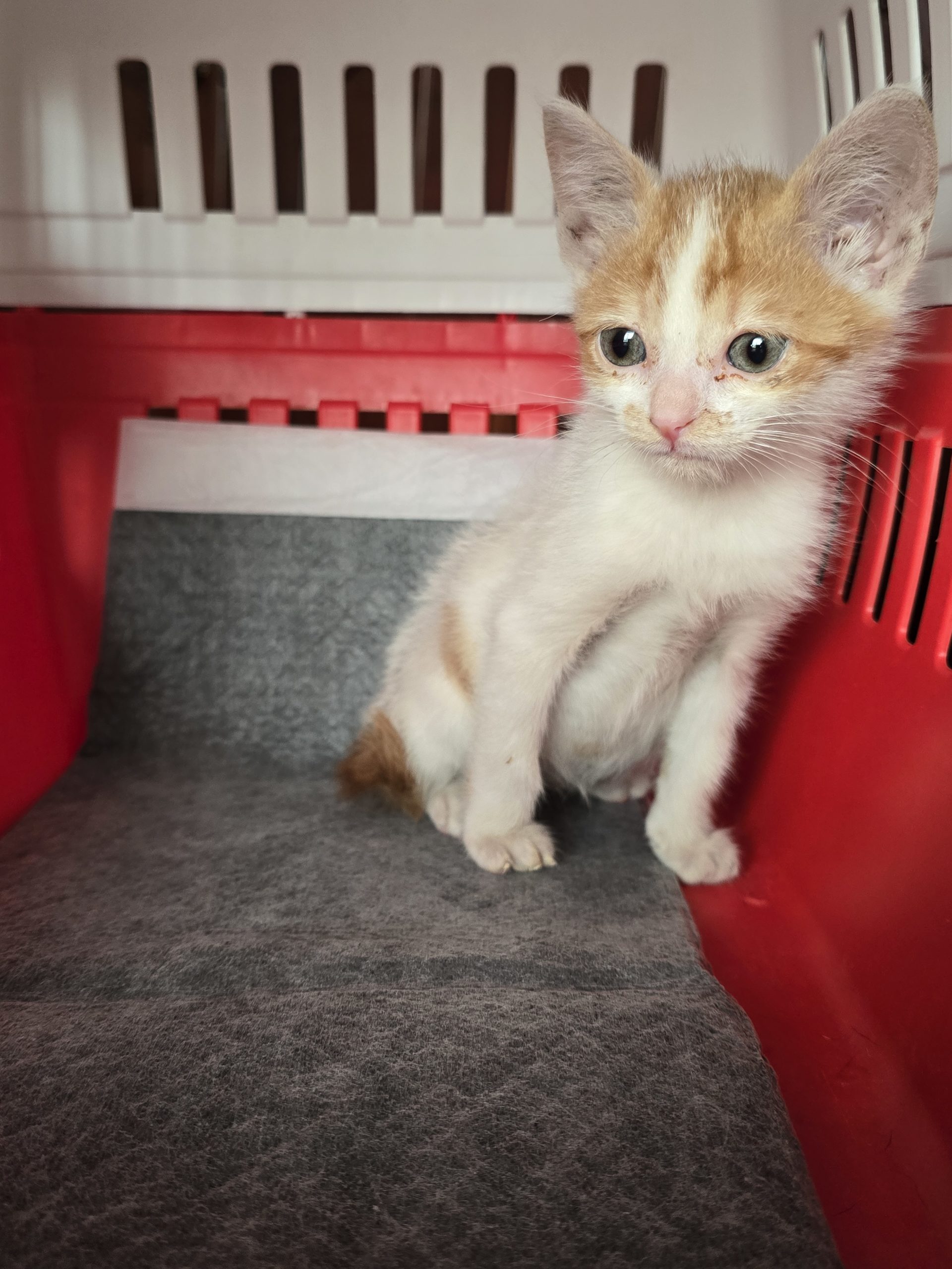 Como la mayoría de los bebes que nos llegan de la calle lo hacia muy muy asustada pero la experiencia nos dice que es solo cuestión de tiempo que se convierta en una gatita adorable. De momento la casa de acogida va haciendo avances.