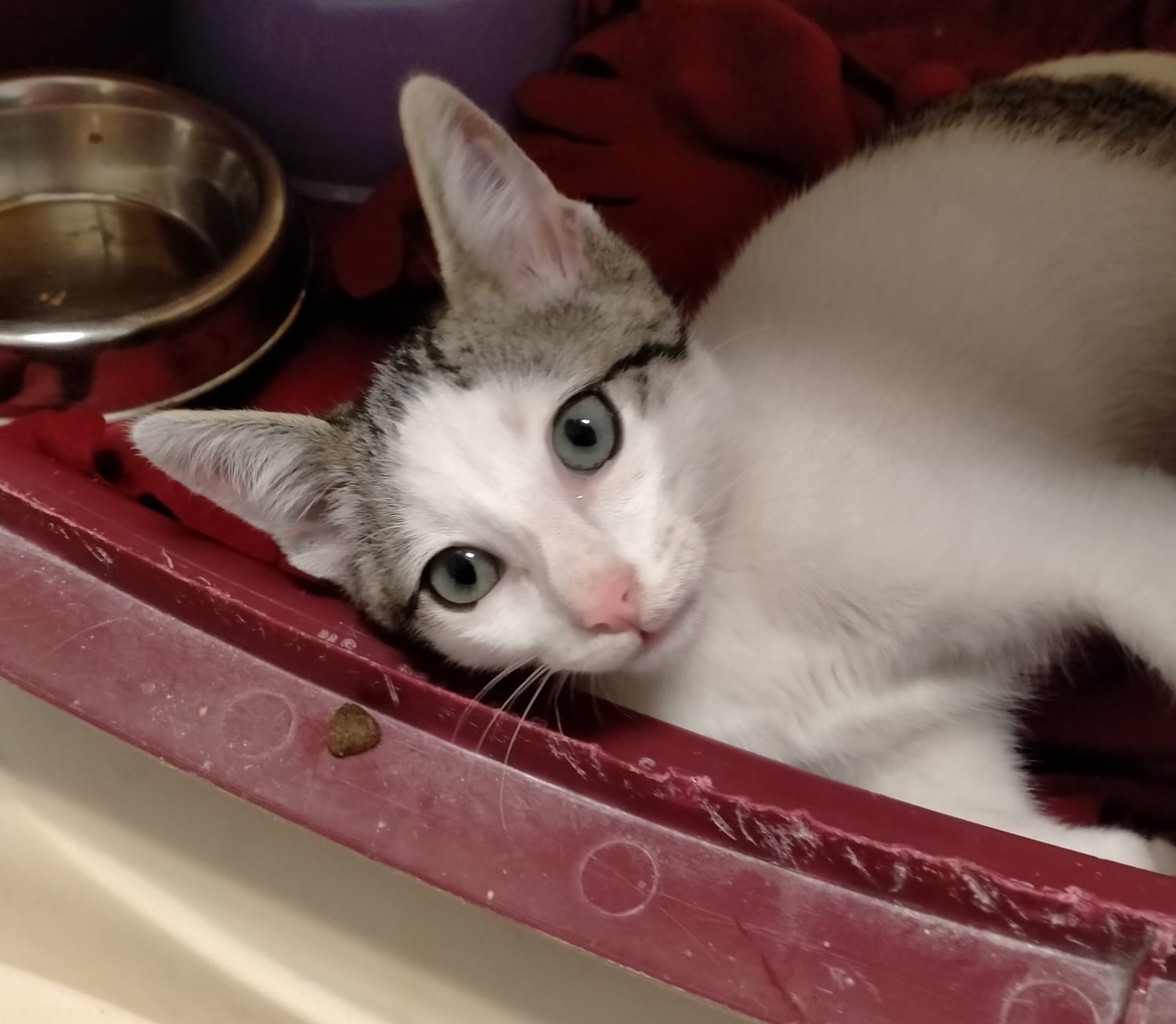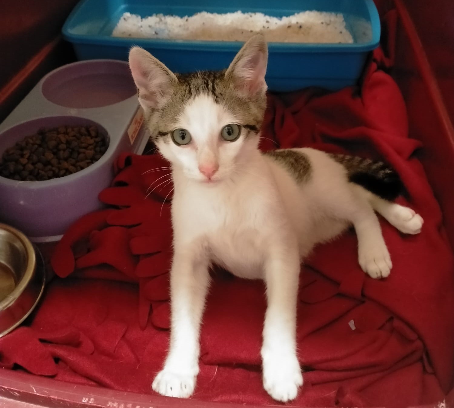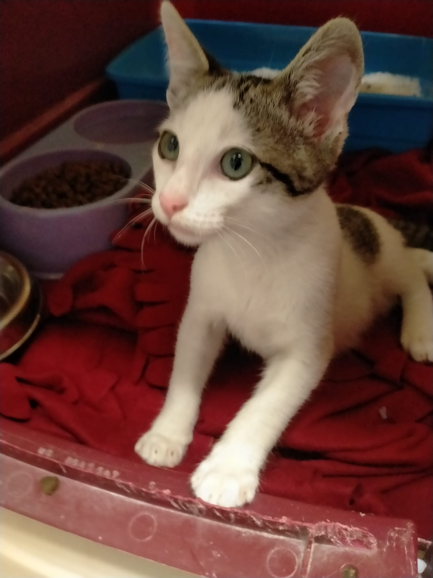 Tango llegaba a la perrera hace unos días. Es un gatín de unos 3 meses acostumbrado a los humanos. Es majísimo, cariñosísimo y todo amor!!!. Vamos que no hay más «ísimos» para ponerle porque no le caben. 🙂