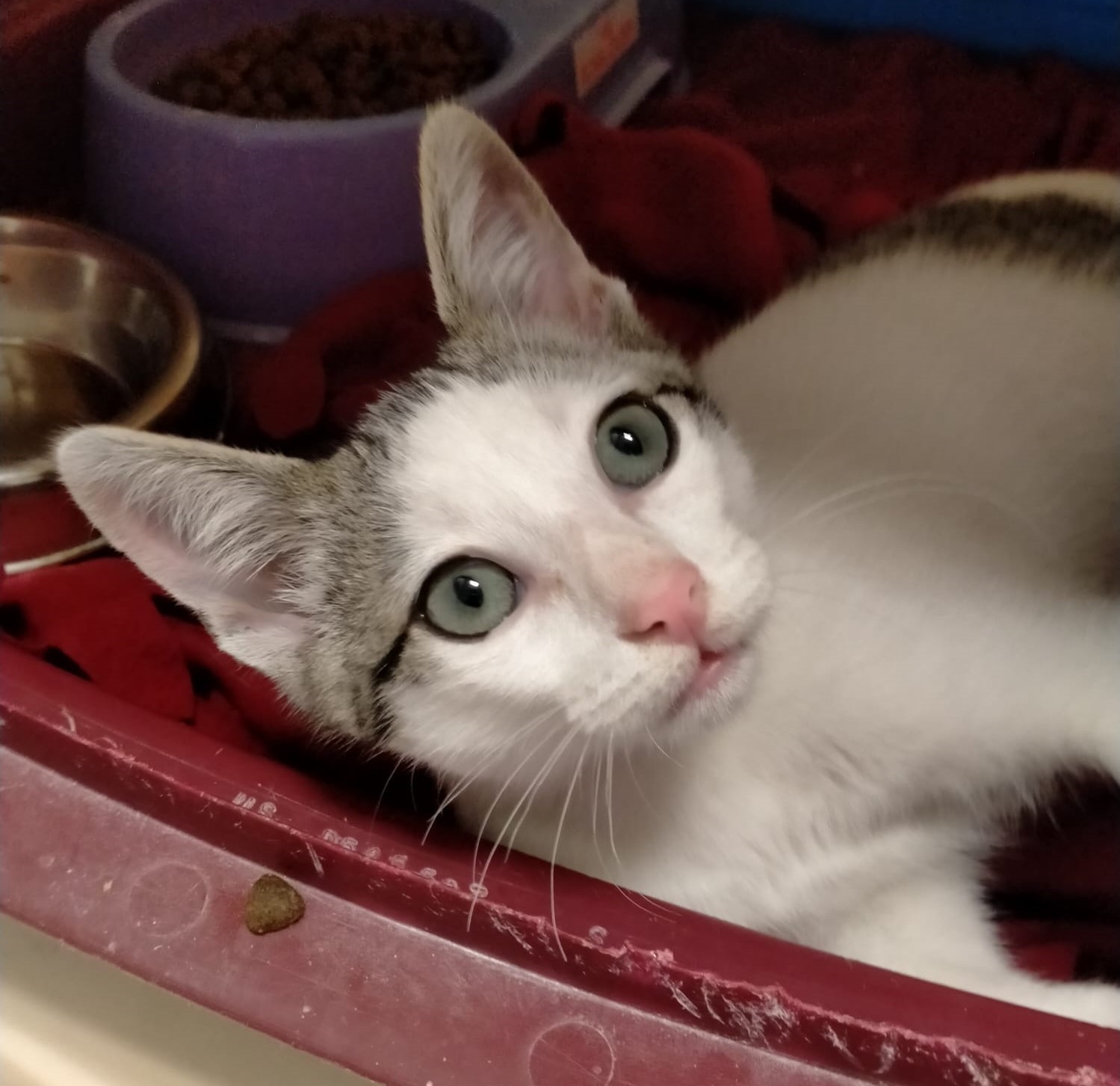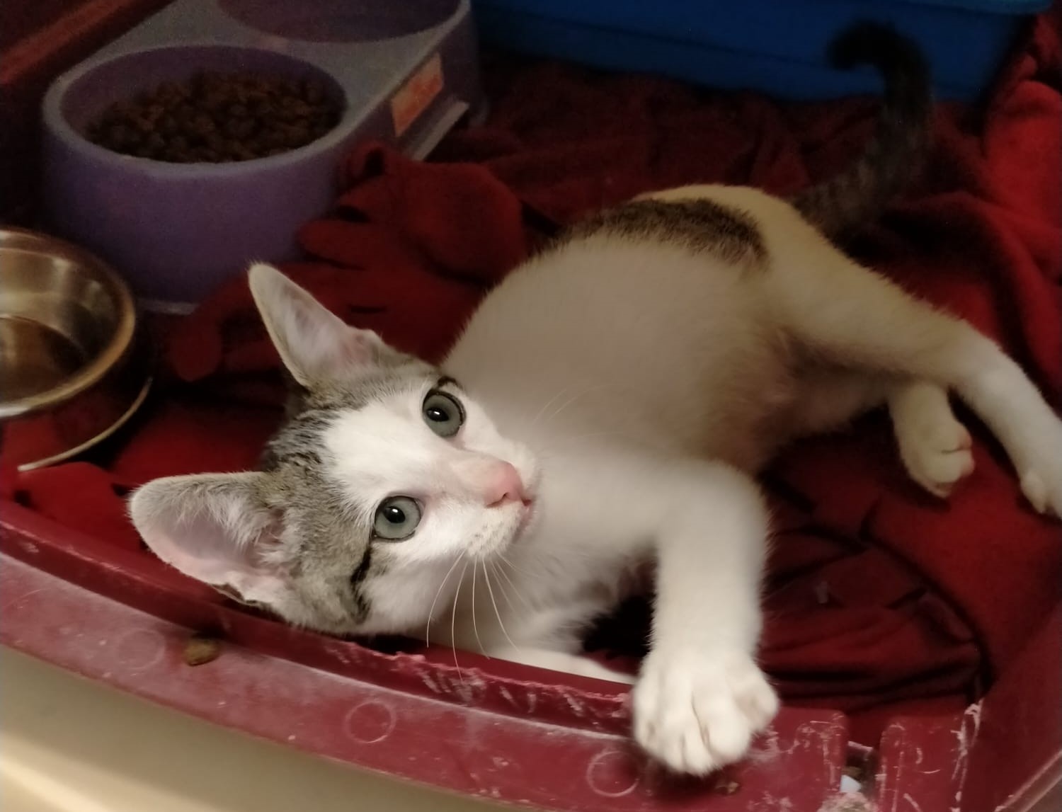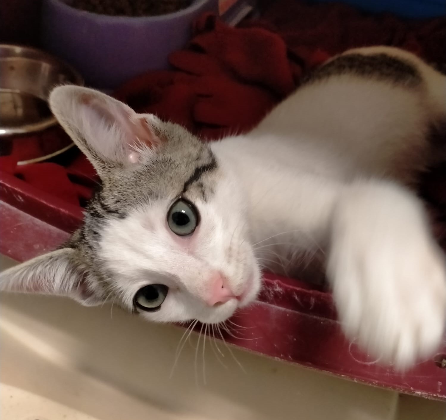 Tango llegaba a la perrera hace unos días. Es un gatín de unos 3 meses acostumbrado a los humanos. Es majísimo, cariñosísimo y todo amor!!!. Vamos que no hay más «ísimos» para ponerle porque no le caben. 🙂
