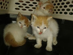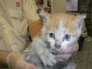 Los tres estaban de porquería hasta arriba… ya os podéis imaginar de qué tipo metidos en una alcantarilla, así que fueron bañados para evitar intoxicaciones… las fotos de antes y después son impresionantes, no parecen ni los mismos gatitos.