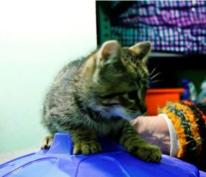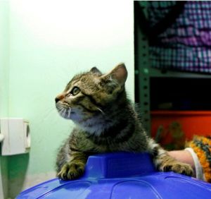 Tiber es hermano de Chole, son dos gatines que no llegan a dos meses, recogidos de la calle, desparasitados ya, en principio tímidos, su primer impulso es escapar, pero ni bufan, ni sacan las uñas, es normal, hasta que se hagan un poquito, luego sern seguramente, cariñosos, solo necesitan tiempo y unos mimos.