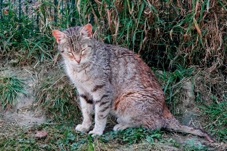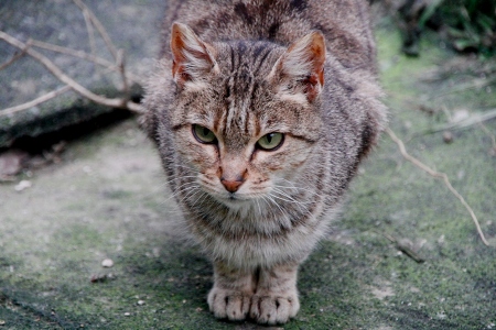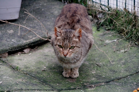 Tigra ya llevo tiempo esperando su oportunidad, es desconfiada, se acerca para comer lata. Ha mejorado pero va a su bola.