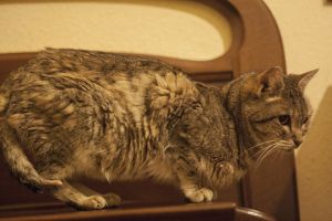 Como no lo estaba pasando nada bien en la perrera… fue sacada a una casa de acogida y ahí entendimos todo…Tigra es una gata ancianita, rondará tranquilamente los 13 años o más, hay que tener en cuenta que la mayor parte de ellos pasados en la calle o la perrera y eso se paga.