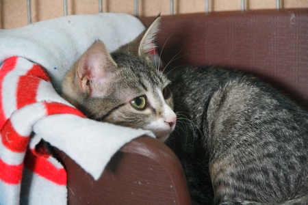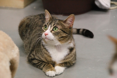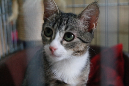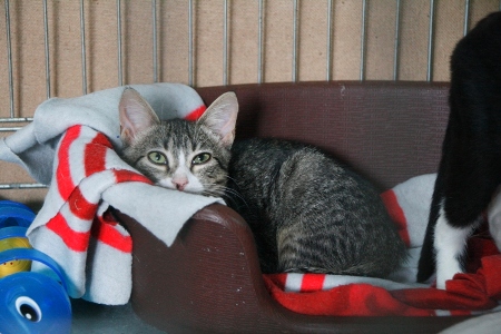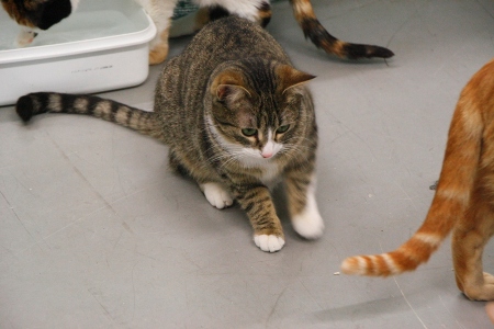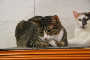 Esta es Tiramisú, una preciosa gatita hermana de Mousse, tiene carácter huidizo pero cada vez se van dejando tocar un poco mas, seguramente este carácter cambiaría en una casa.