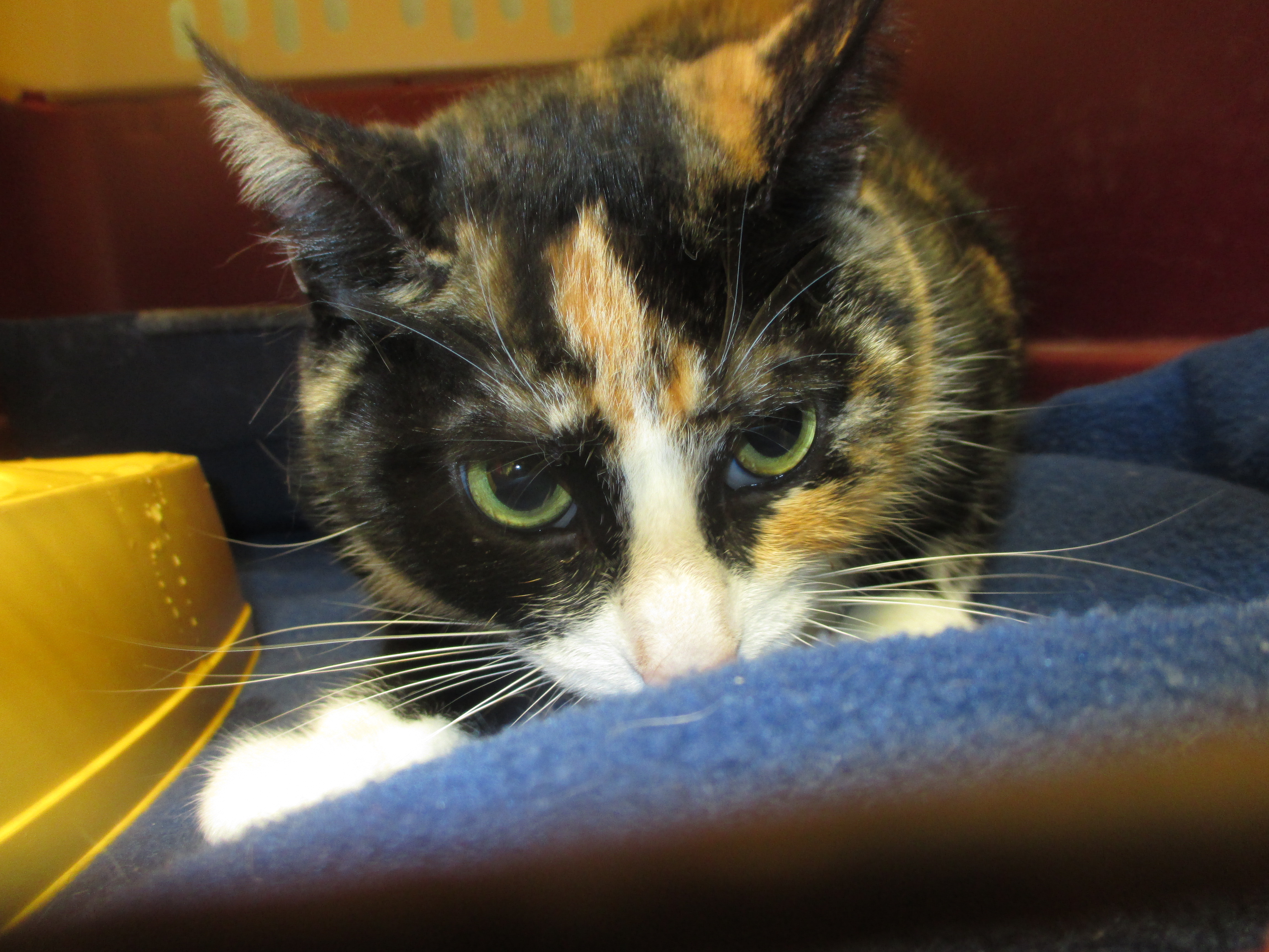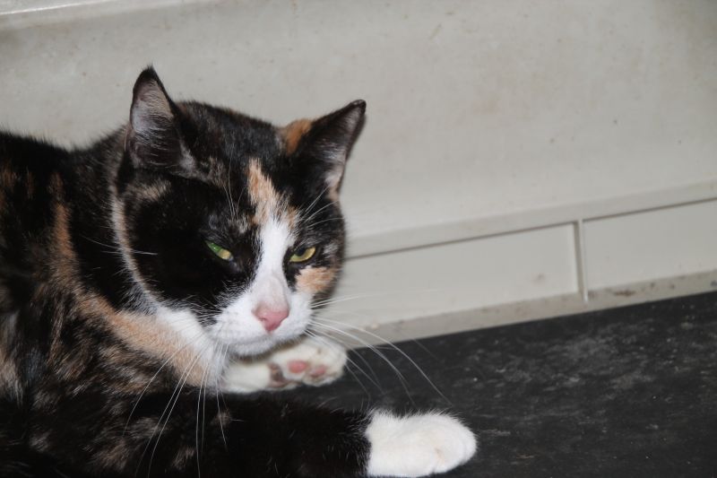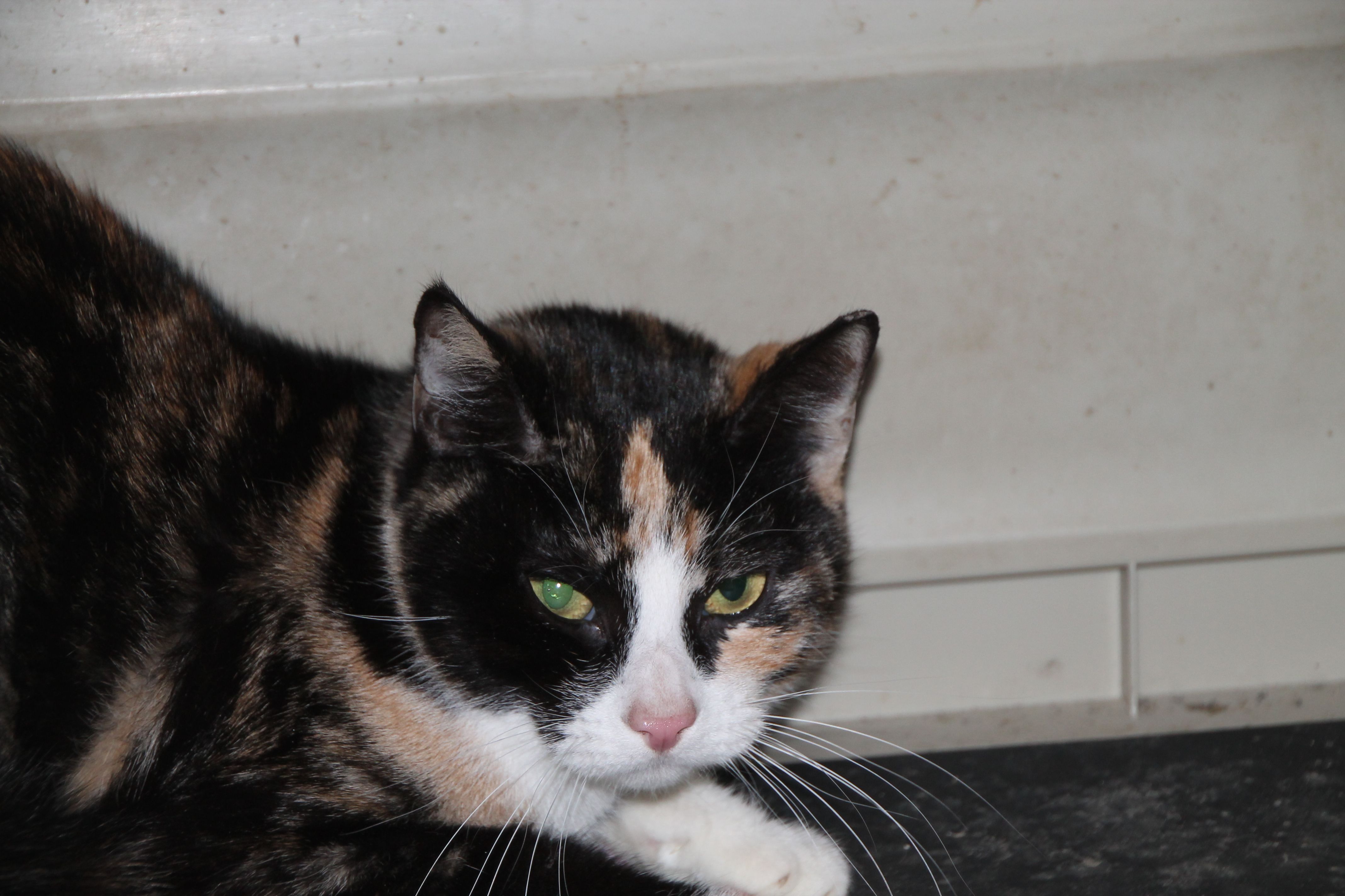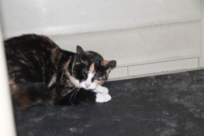 Hace un par de semanas llegaba a la perrera Tisha, esta gata de aproximadamente 4 años con un bonito pelaje tricolor cuyo dueño ha fallecido. Por el momento Tisha se muestra muy asustada y nos lo hace saber; no duda en bufar primero y salir corriendo después. Esperamos que con el tiempo pueda relajarse y que así encontrar un hogar sea mas fácil para ella.