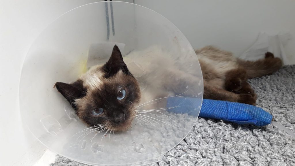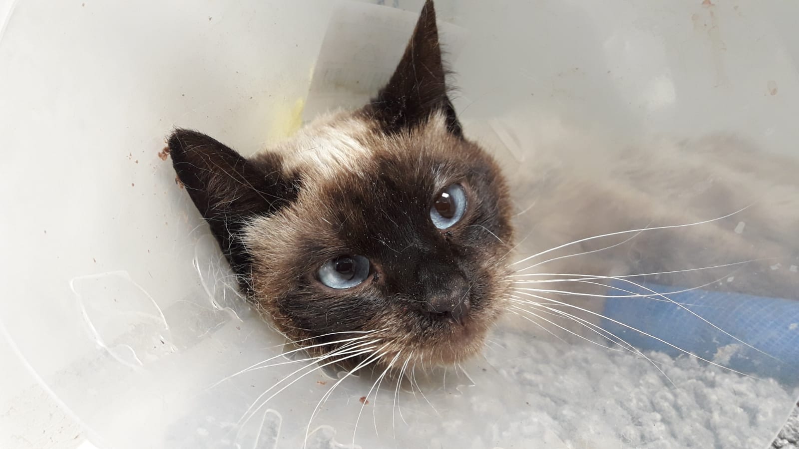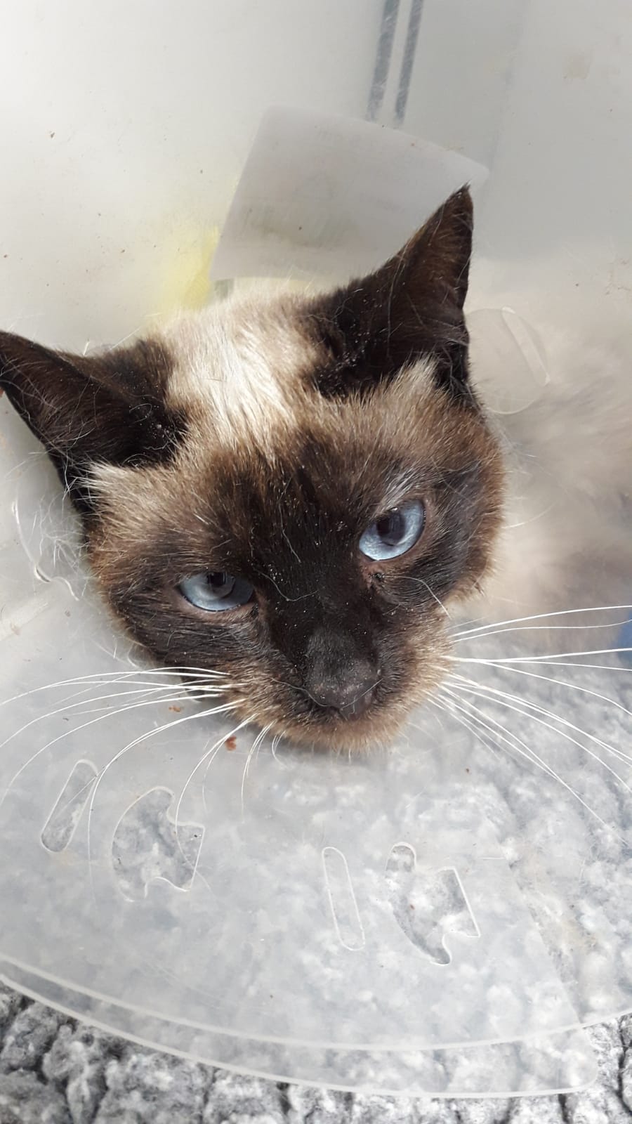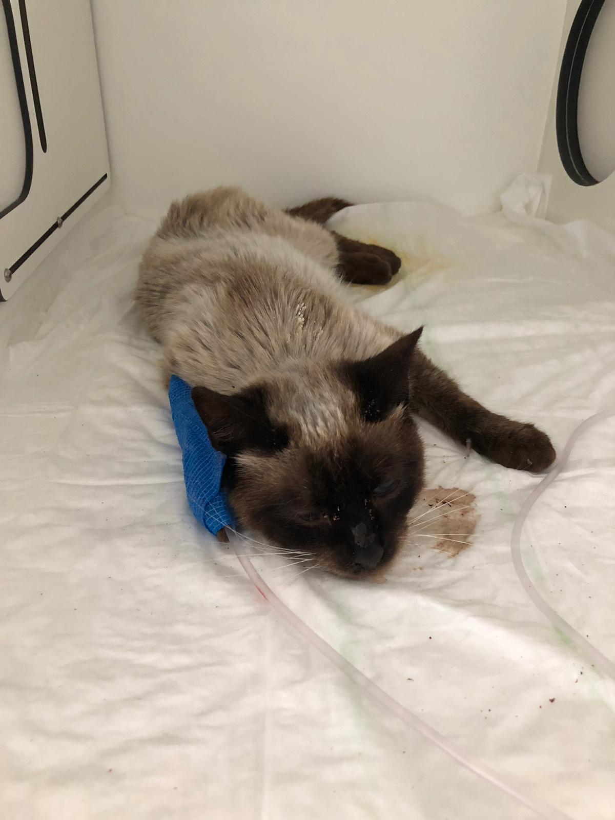 Tito llegaba a nosotras hace una semana en horario de urgencia. Recibíamos una llamada del servicio de recogida donde se nos decía que habia un gato en la vía publica en muy mal estado. Así que automáticamente lo llevamos a ingresar. Ingresaba en estado de Shock, muy deshidratado y con una infestación importante de garrapatas (Cuentan los veterinarios que hacia mucho no veían tantísimas juntas) .Ademas presentaba una importante rigidez corporal que gracias a la medicación va solucionándose. Los veterinarios barajaron muchas posibilidades, inclusive la del tétanos pero parece que hemos descartado esa posibilidad. Entre las pruebas víricas realizadas ha dado negativo a inmunodeficiencia y leucemia felina pero aun falta de llegar algún resultado. También se ha descartado lesiones cervicales que pudieran dar lugar a esa rigidez. La evolución esta siendo favorable y ya comienza a moverse . De carácter podemos decir que aunque le manipulan porque no puede moverse es un gato callejero y como tal desconfiado por el momento mordiendo incluso a personal de la clinica 🙁 Confiamos en que se relaje, la compañera que ha ido a visitarle ha podido acariciarle pero ha recibido bufidos y amenazas :D.