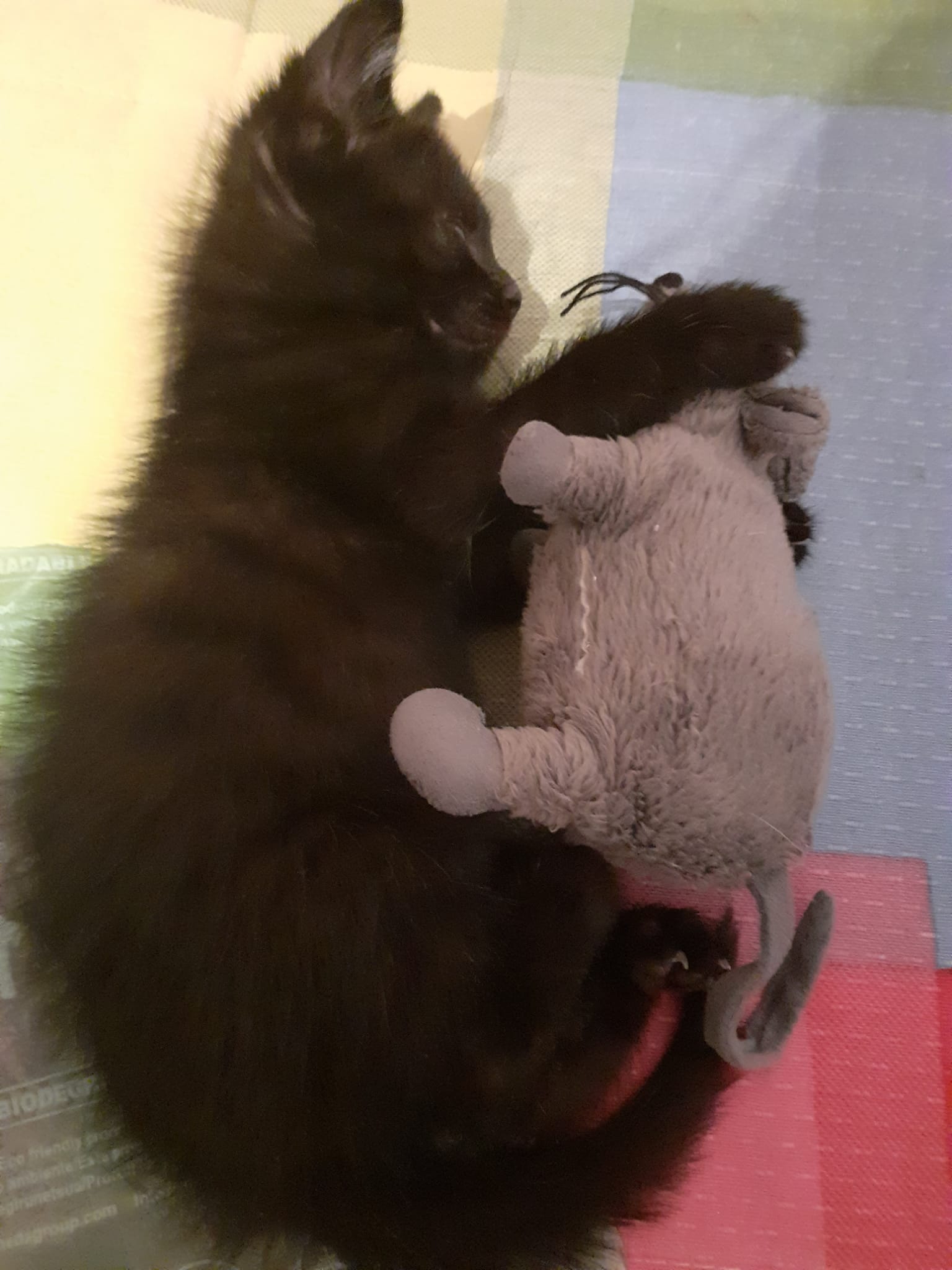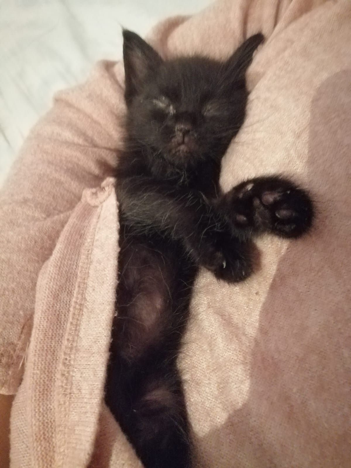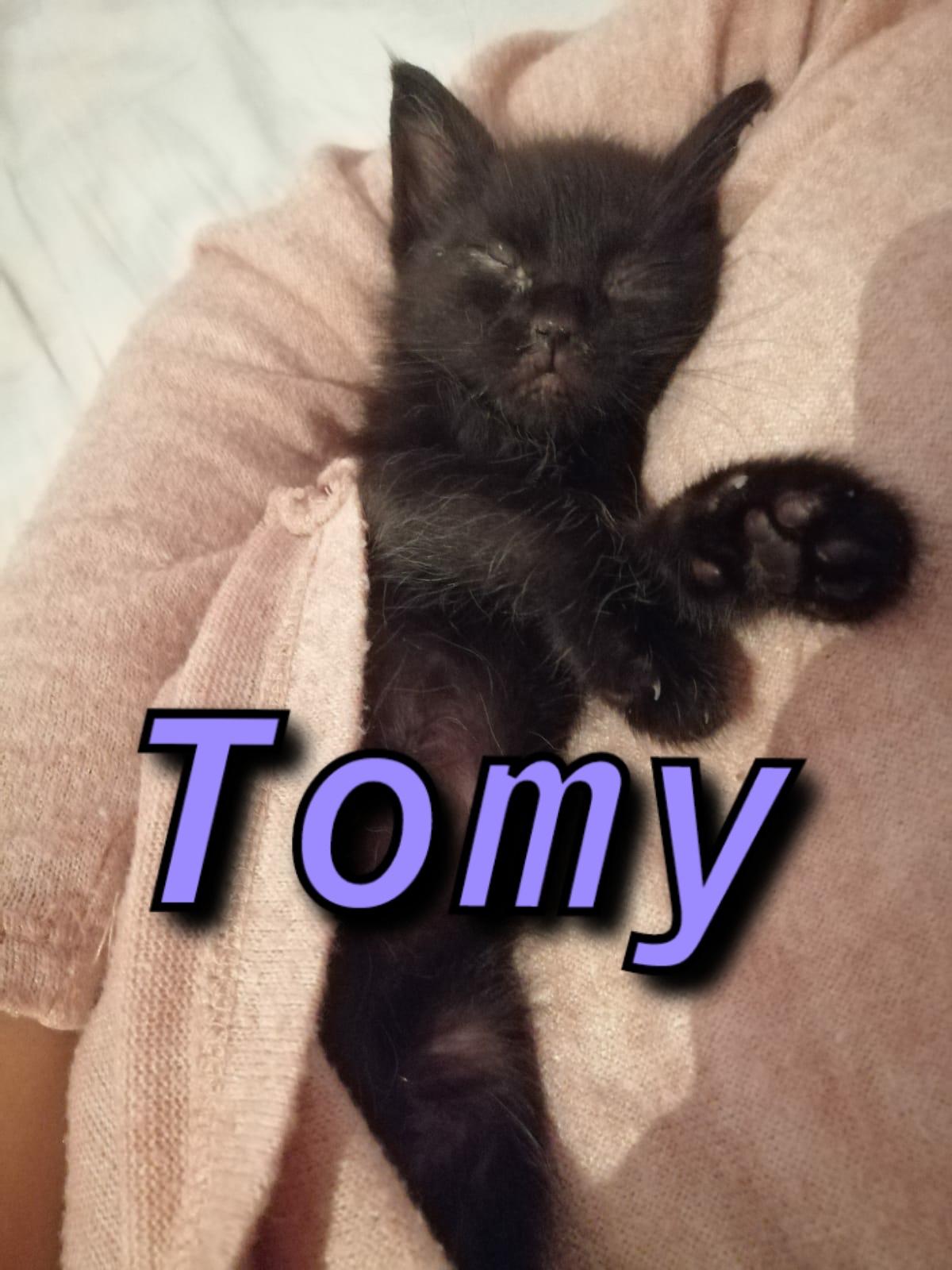 Tomy:Como se ve en la foto así le gusta dormir, es el más juguetón de los tres, con el todo es juego, le gusta correr un montón y le cuesta quedarse en un solo sitio y también es muy cariño igual que coffe