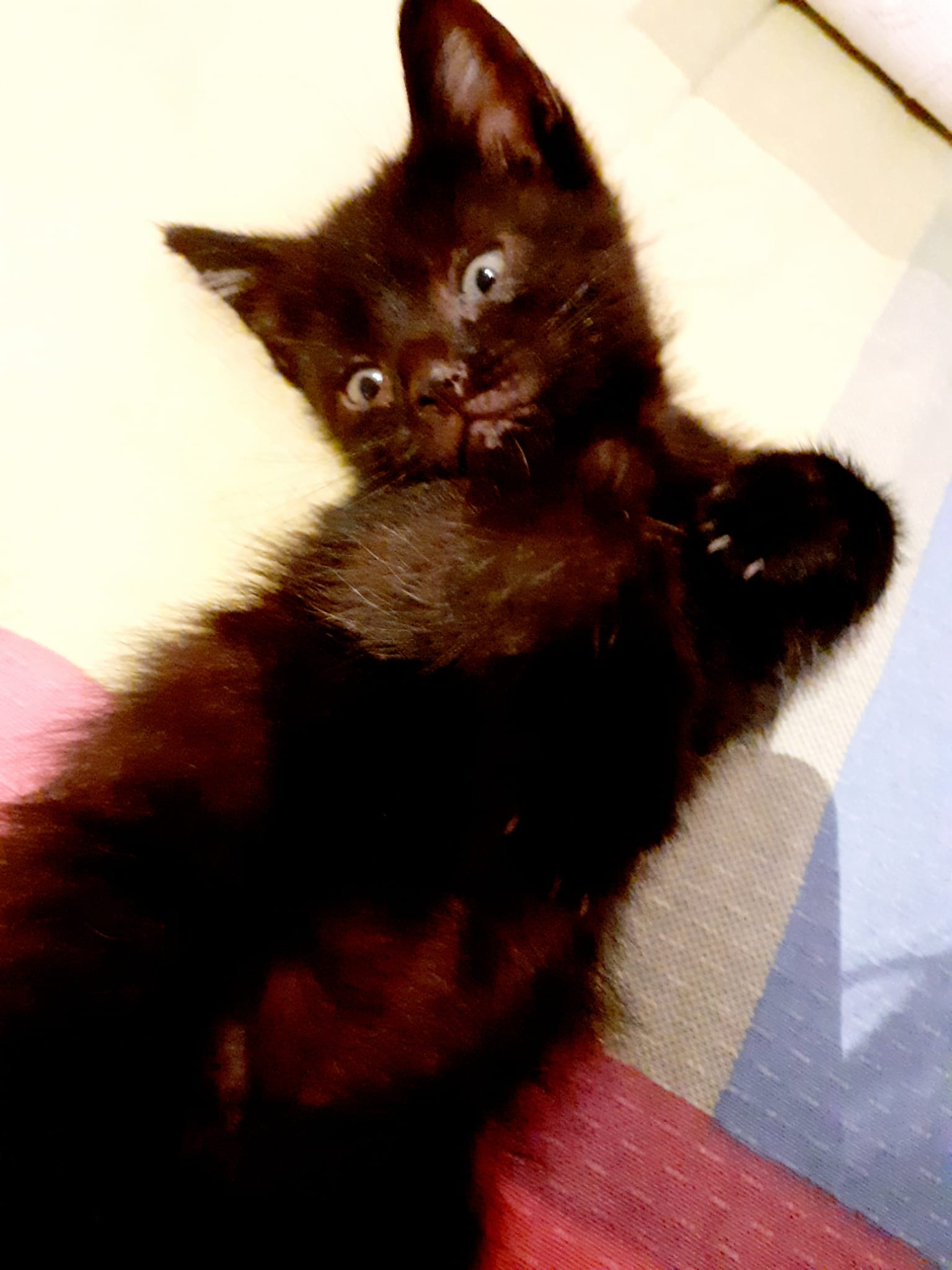 Wendy: Es una gatita que le gusta jugar y también saltar pero no le gusta estar sola, siempre juega con uno de sus hermanos, si esta sola solo se queda quieta.