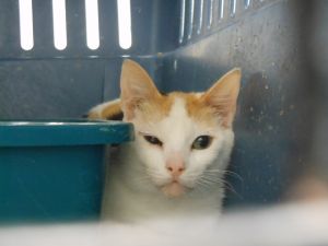 Toscana ha sido rescatada de una colonia y la pobrecita está asustada se está desmejorando porque no come bien y se debilita se nota en uno de sus ojillos, lo tiene un poco tocado y solo necesita ponerse fuerte de nuevo y seguro que se le cura rápido.