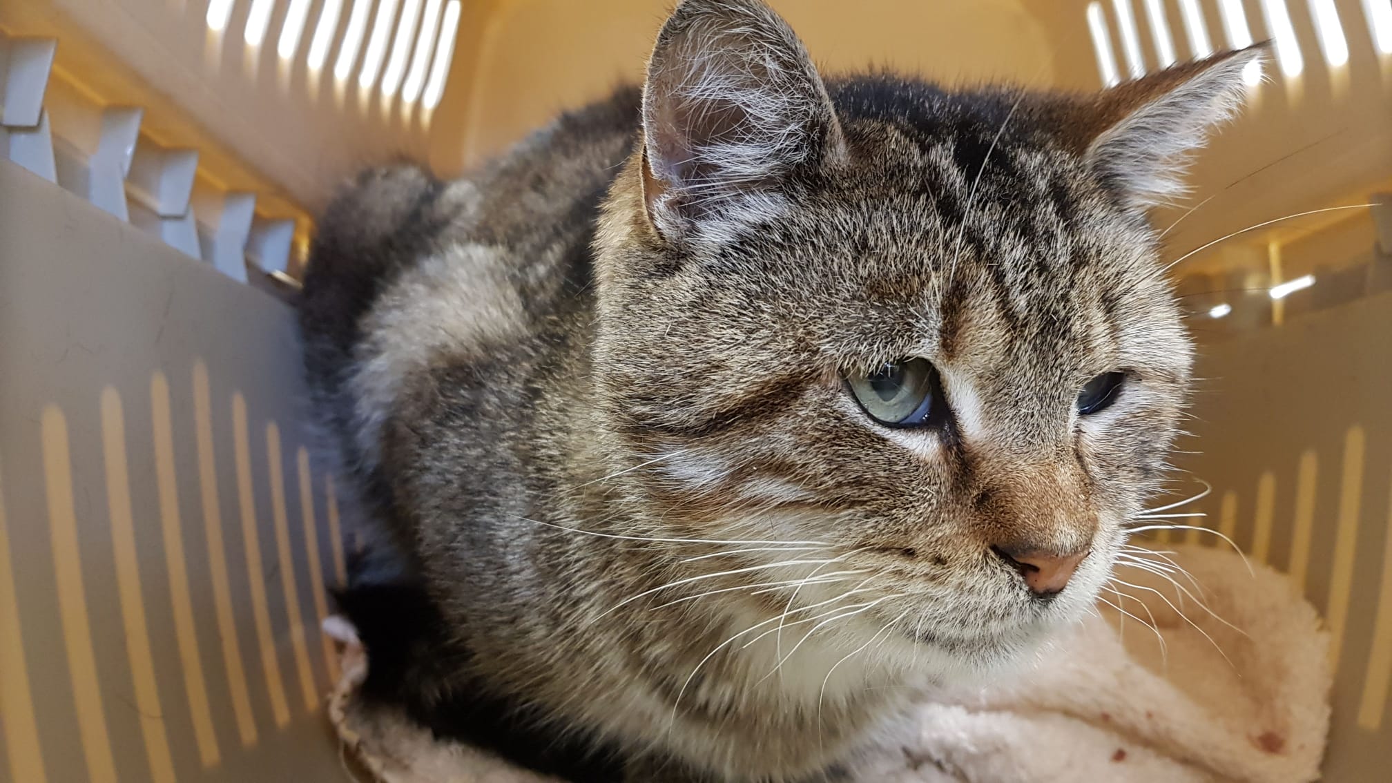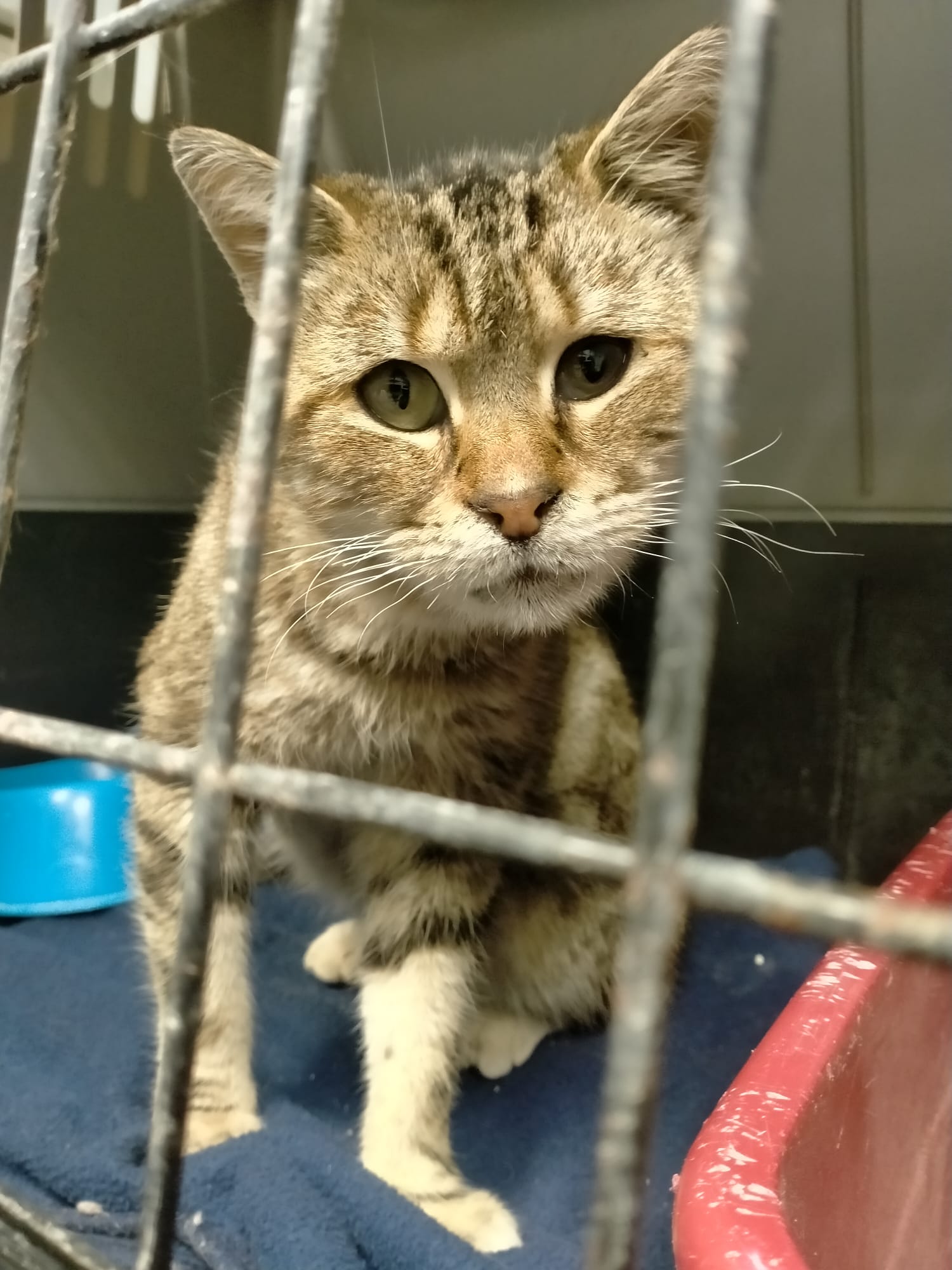 Es un gato muy bueno, sospechamos que anciano pero también puede ser que su vida no ha sido fácil. Le faltan los dientes incisivos, esta delgado y con la primera desparasitación ha expulsado un montón de lombrices. Además, tiene una cicatriz en el ojo izquierdo presumiblemente como secuela de algún herpesvirus pasado. Es un gato buenísimo que solo pide mimos y buscamos para el la posibilidad de vivir una «jubilación» digna en una buena familia.
