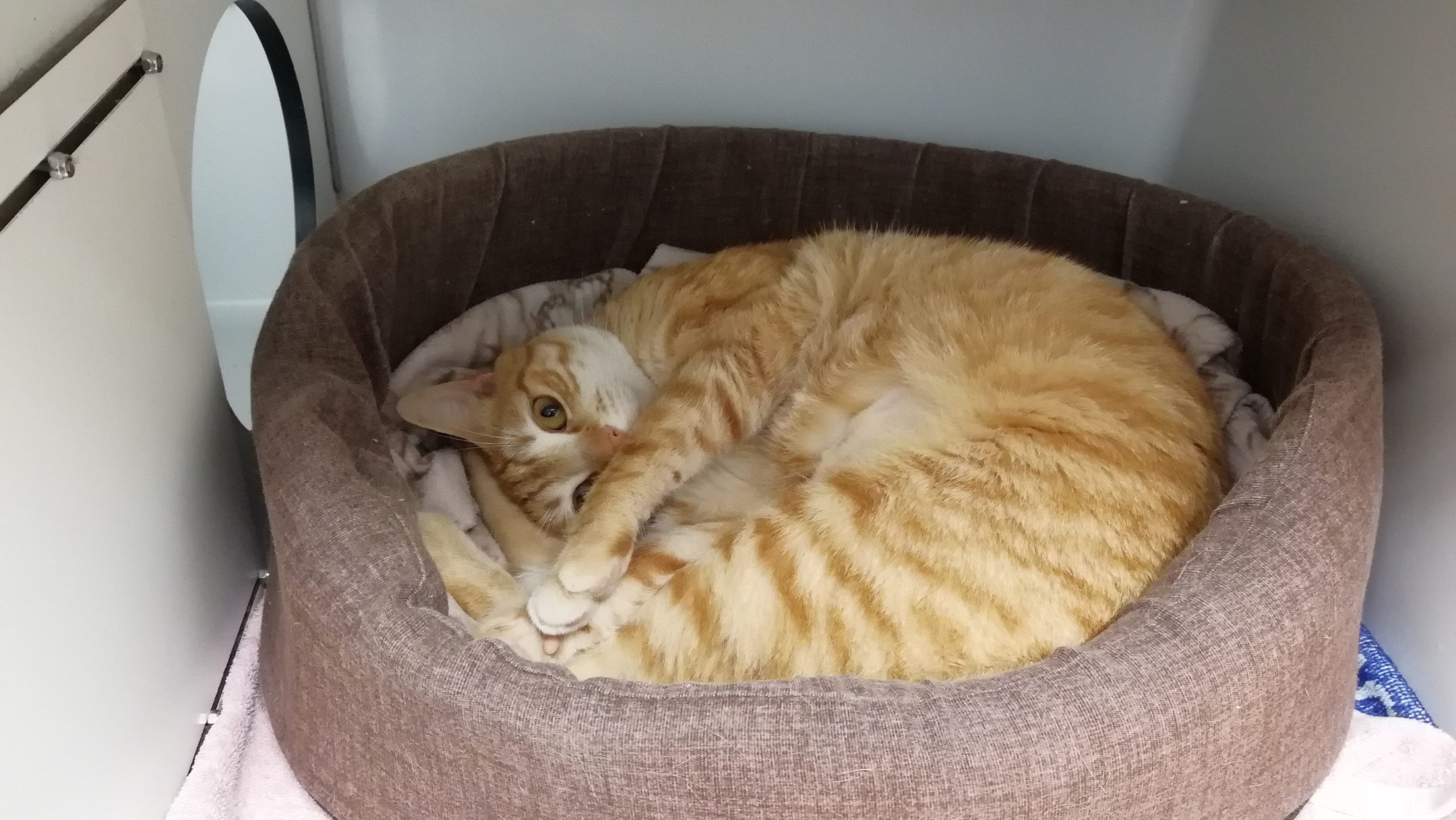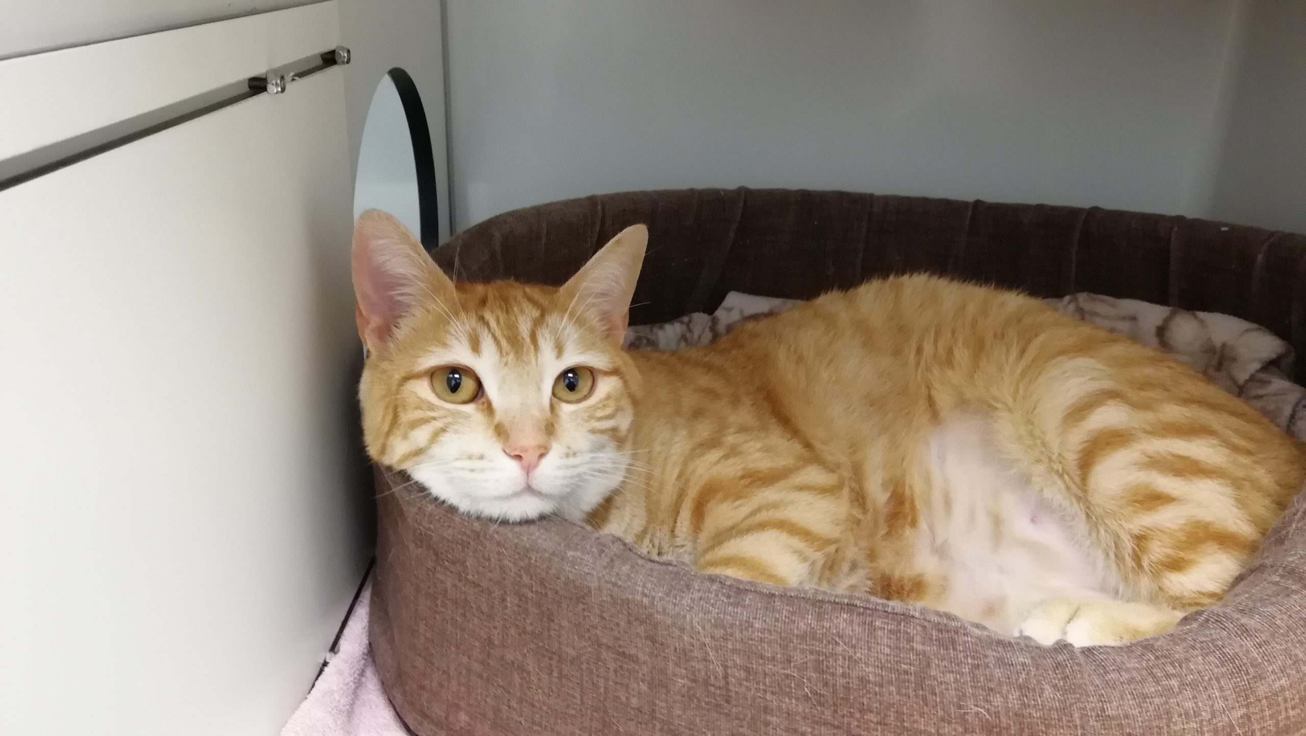 TREVOR ha pasado por clinica por un problema digestivo, nada grave, algun vomito y heces bastante feuchas. Mejoró casi inmediatamente con el tratamiento más dieta especifica gastrointestinal I/D. Es tremendamente cariñoso, cuando le abrian la jaula en la clinica mochaba con la carita a todos el equipo veterinario y todos quedaron enamorados de él.
