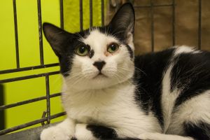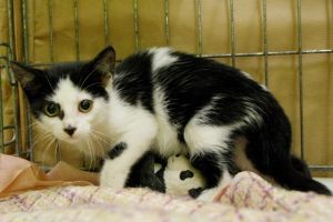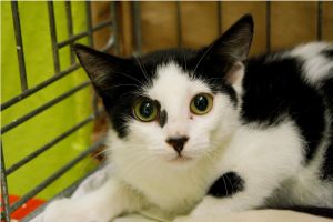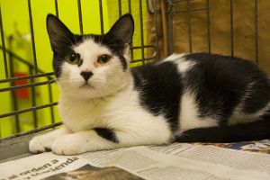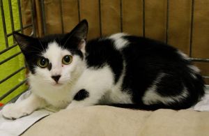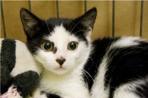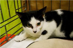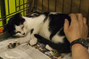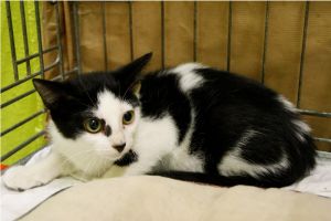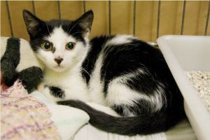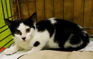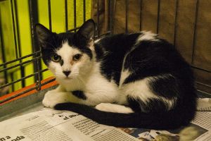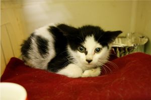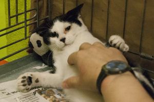 Tiene miedo de la gente. Necesita una familia con paciencia y mano para los felinos.