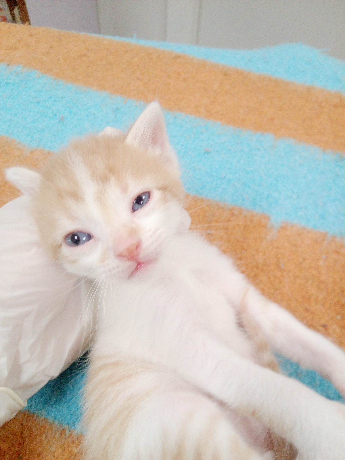 Triton es este rubio de ojos verdes, el más trasto de todos los hermanos, el que más se mueve y el que más juega.