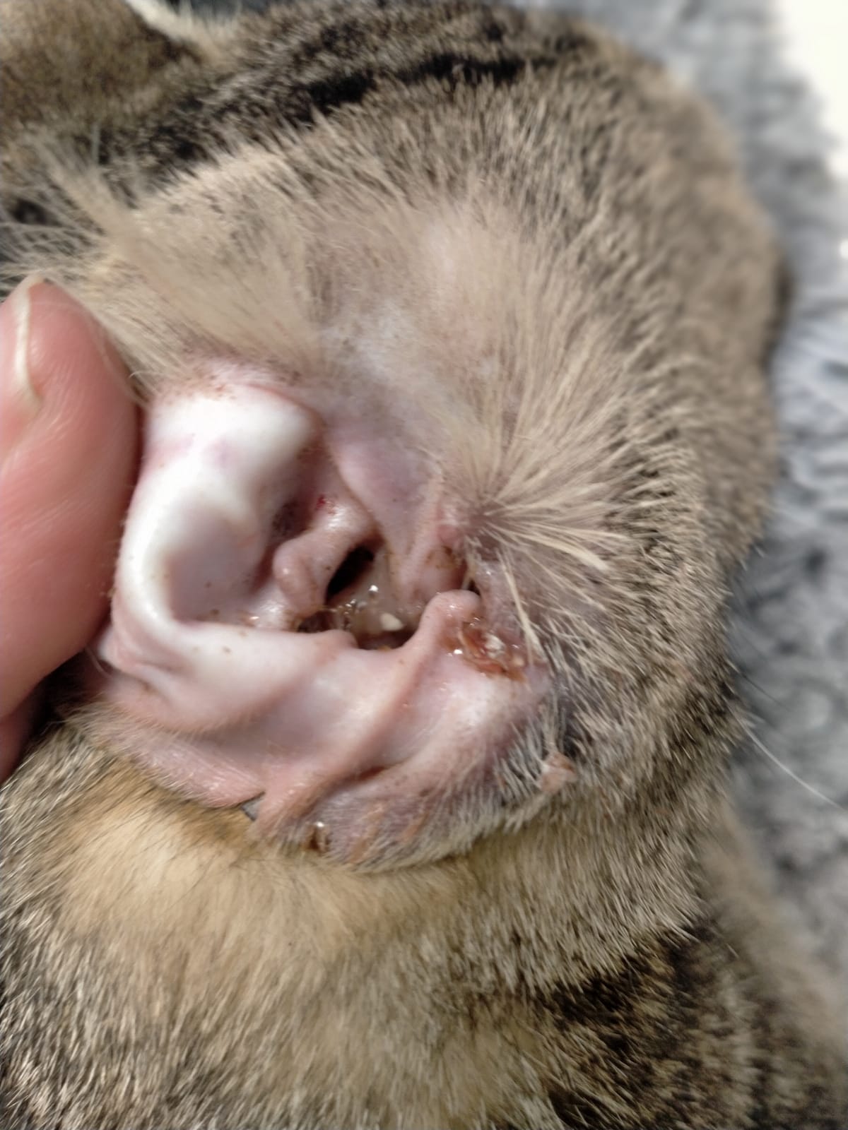 Hace unos días la notábamos intranquila así que la llevamos al vete. Resultó que tenia un pólipos en el oído derecho que tuvieron que ser extirpados. Tras eliminar la causa del dolor, ahora se encuentra mucho mejor y está más tranquila.